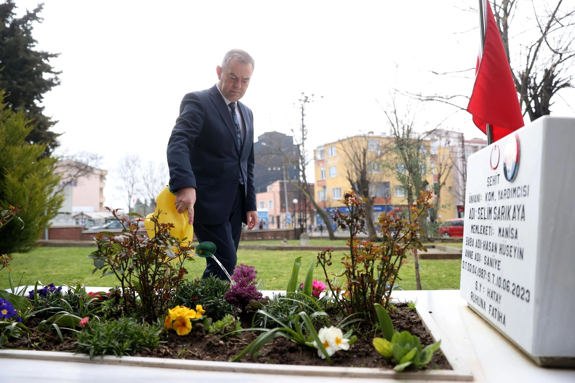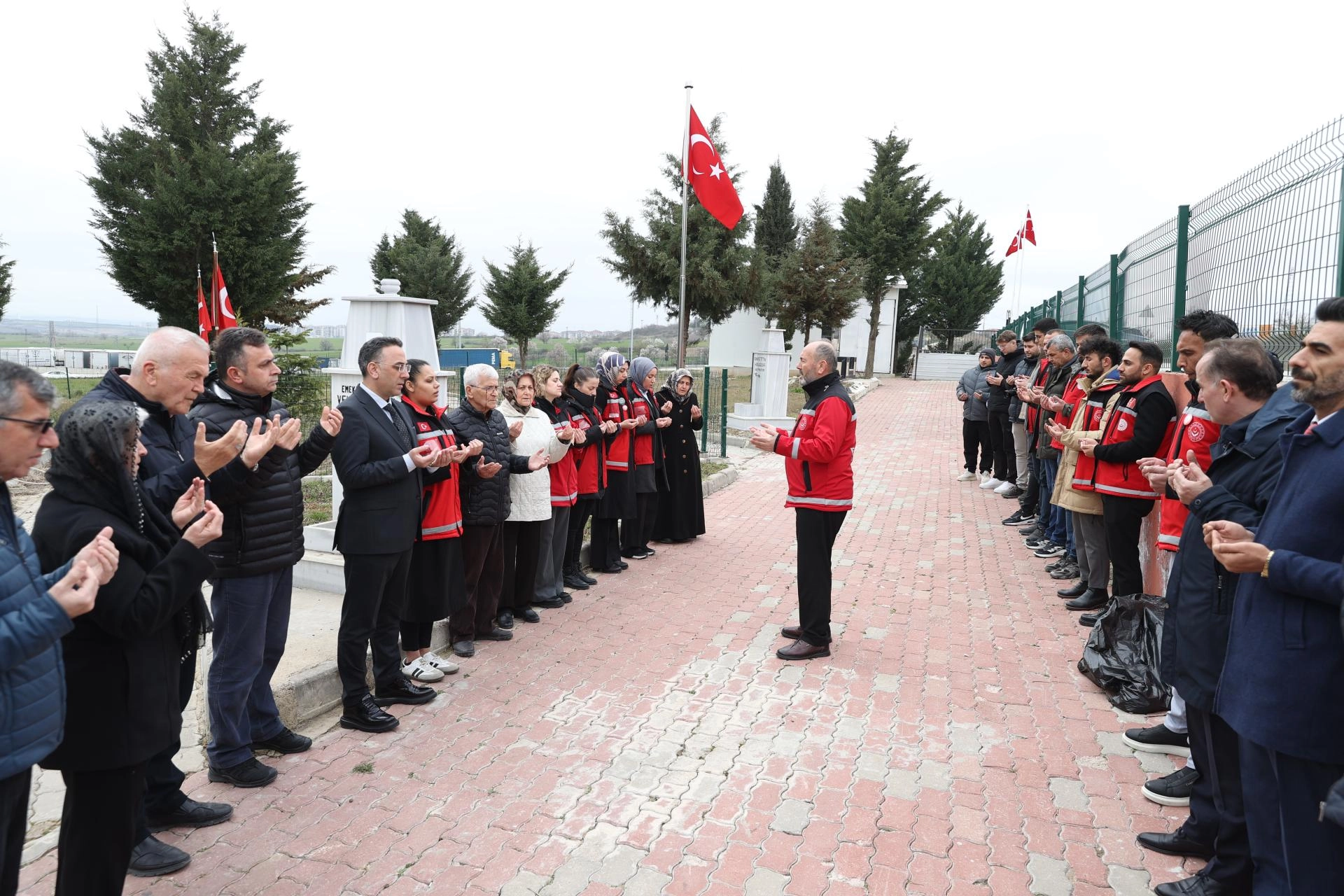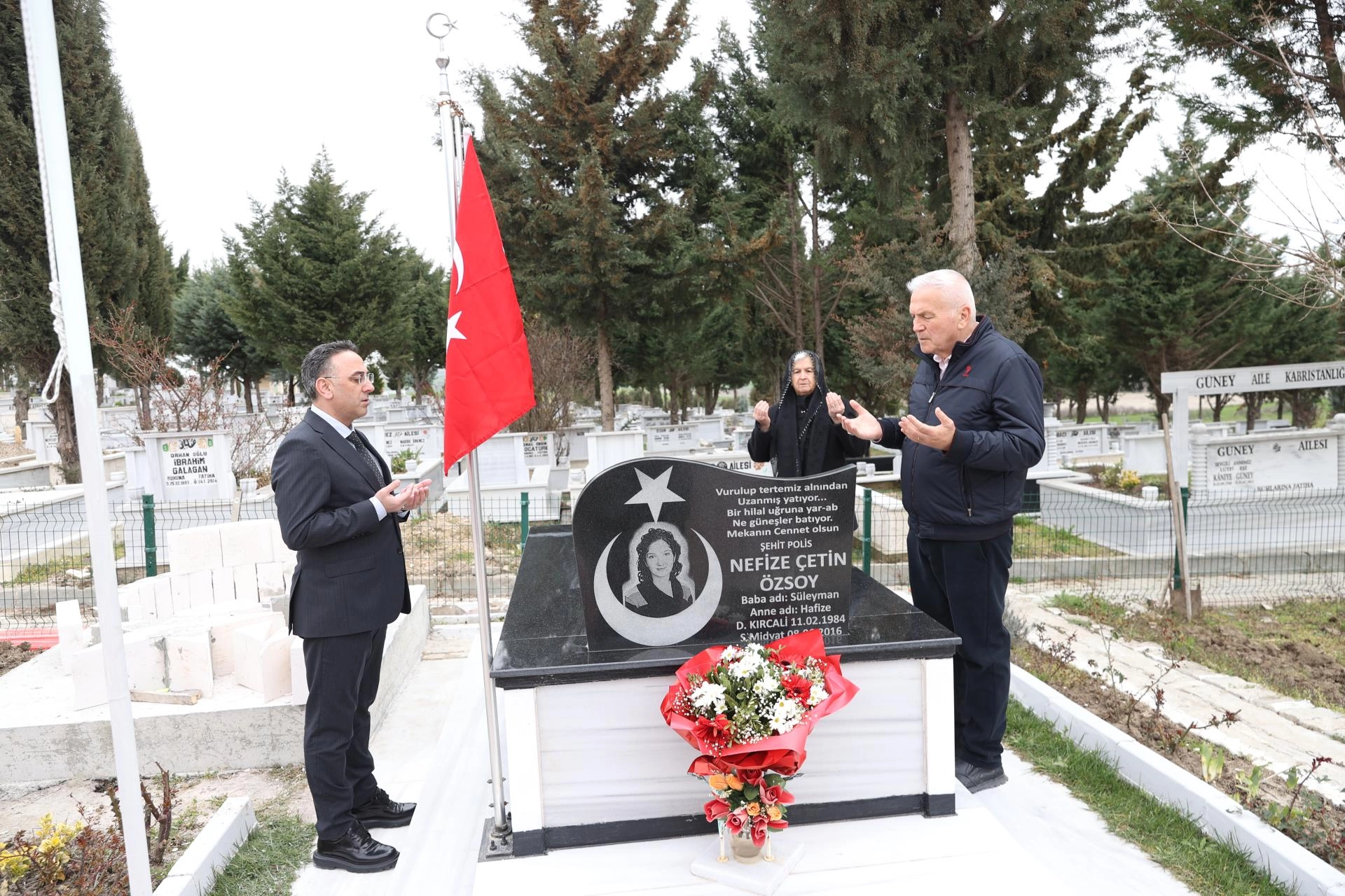 Edirne'de Aile ve Sosyal Hizmetler İl Müdürlüğünce Yenişehir Mezarlığı'ndaki şehitlikte Kur'an-ı Kerim okundu, dua edildi.