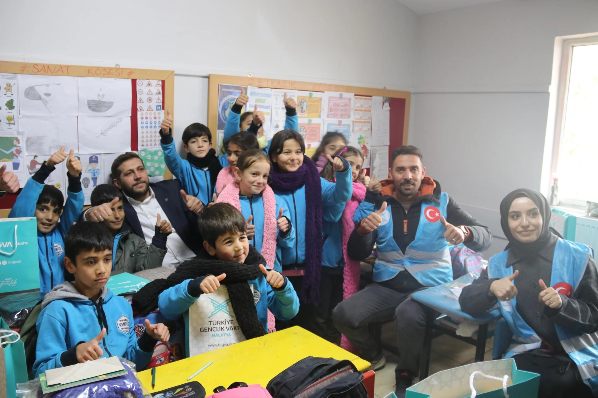 MALATYA (AA) - Türkiye Gençlik Vakfı (TÜGVA) Malatya İl Temsilciliği öncülüğünde depremzede kadınlar, ördükleri atkıları Akçadağ ilçesi kırsalında bulunan okula teslim etti.