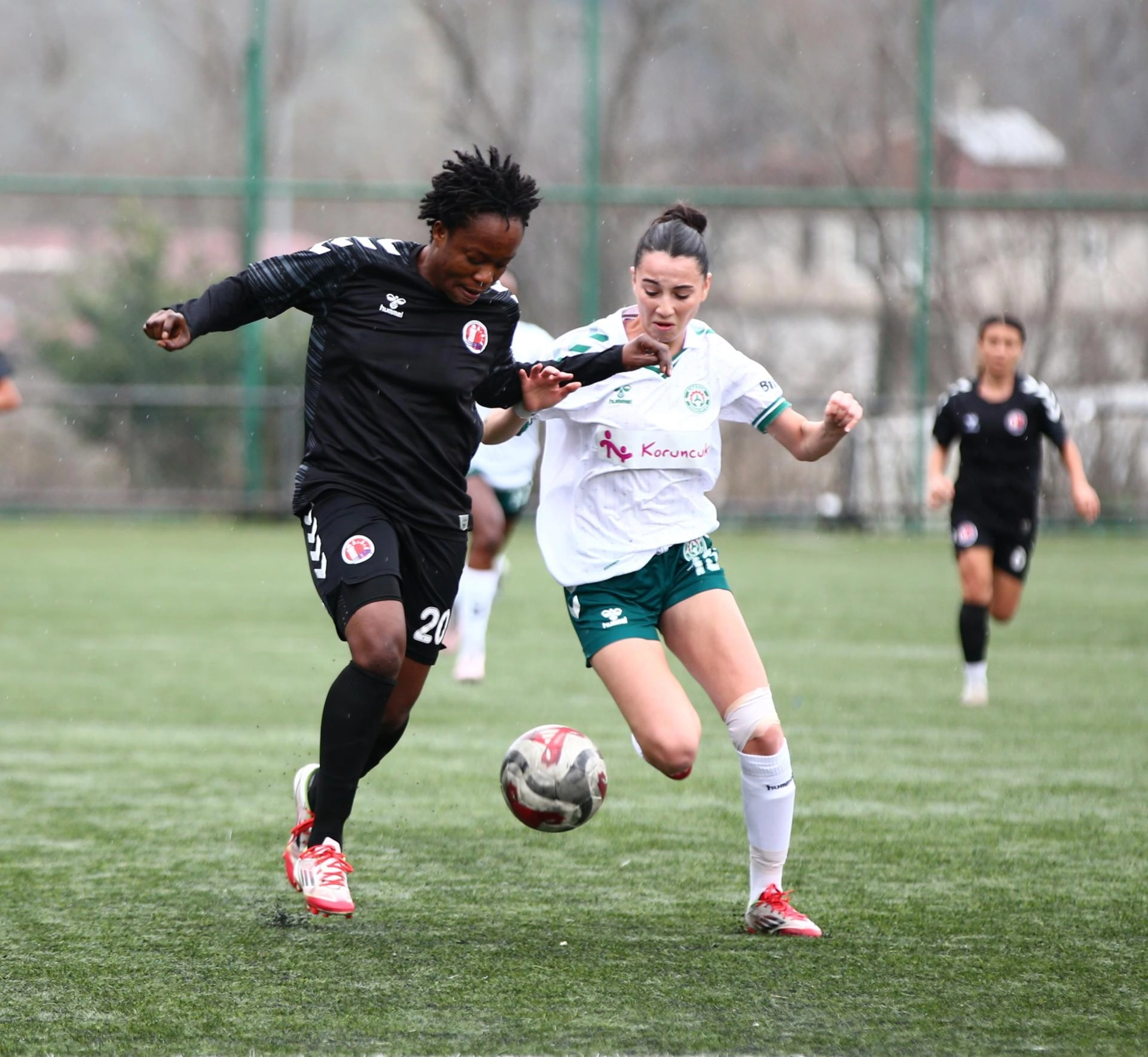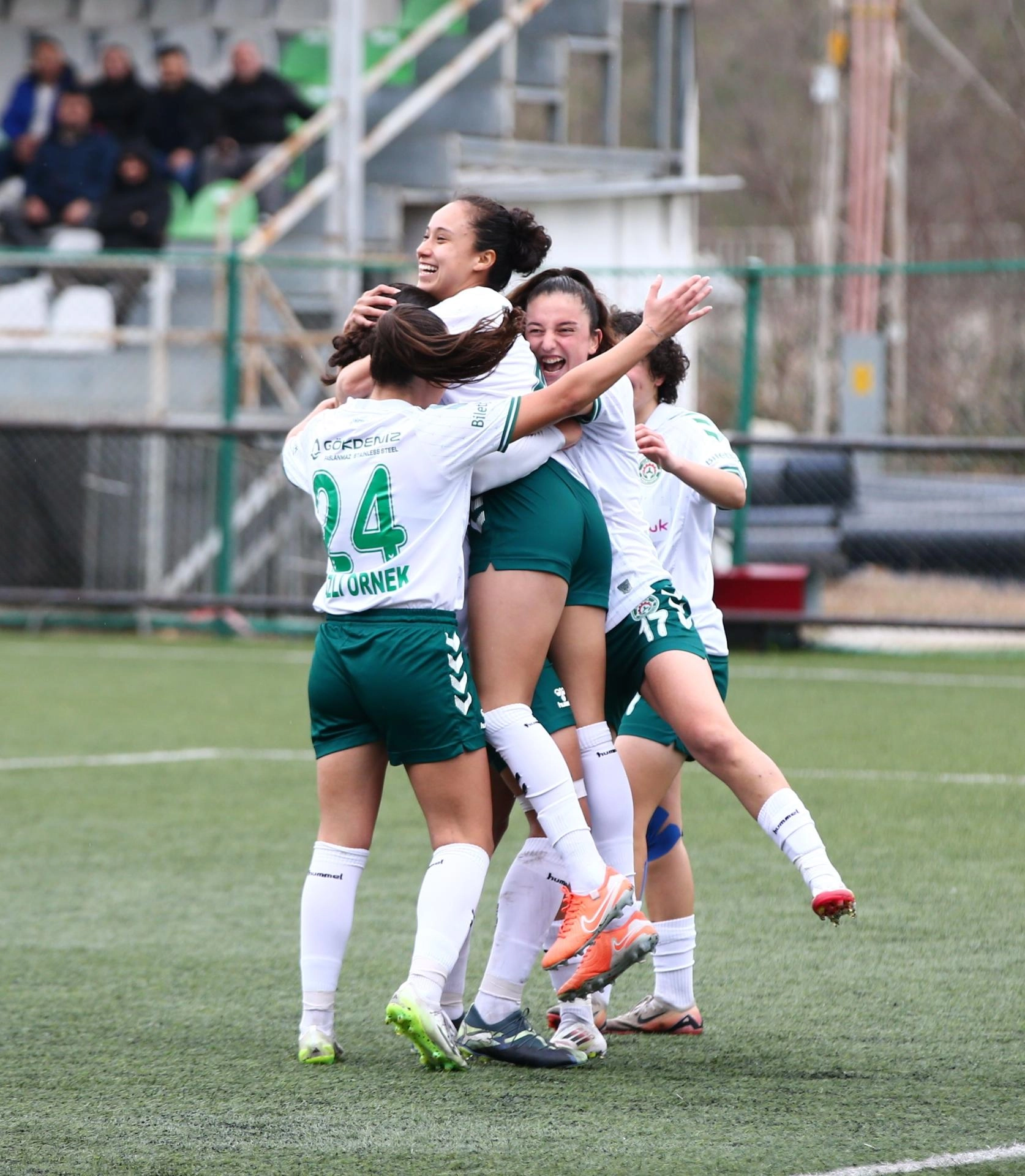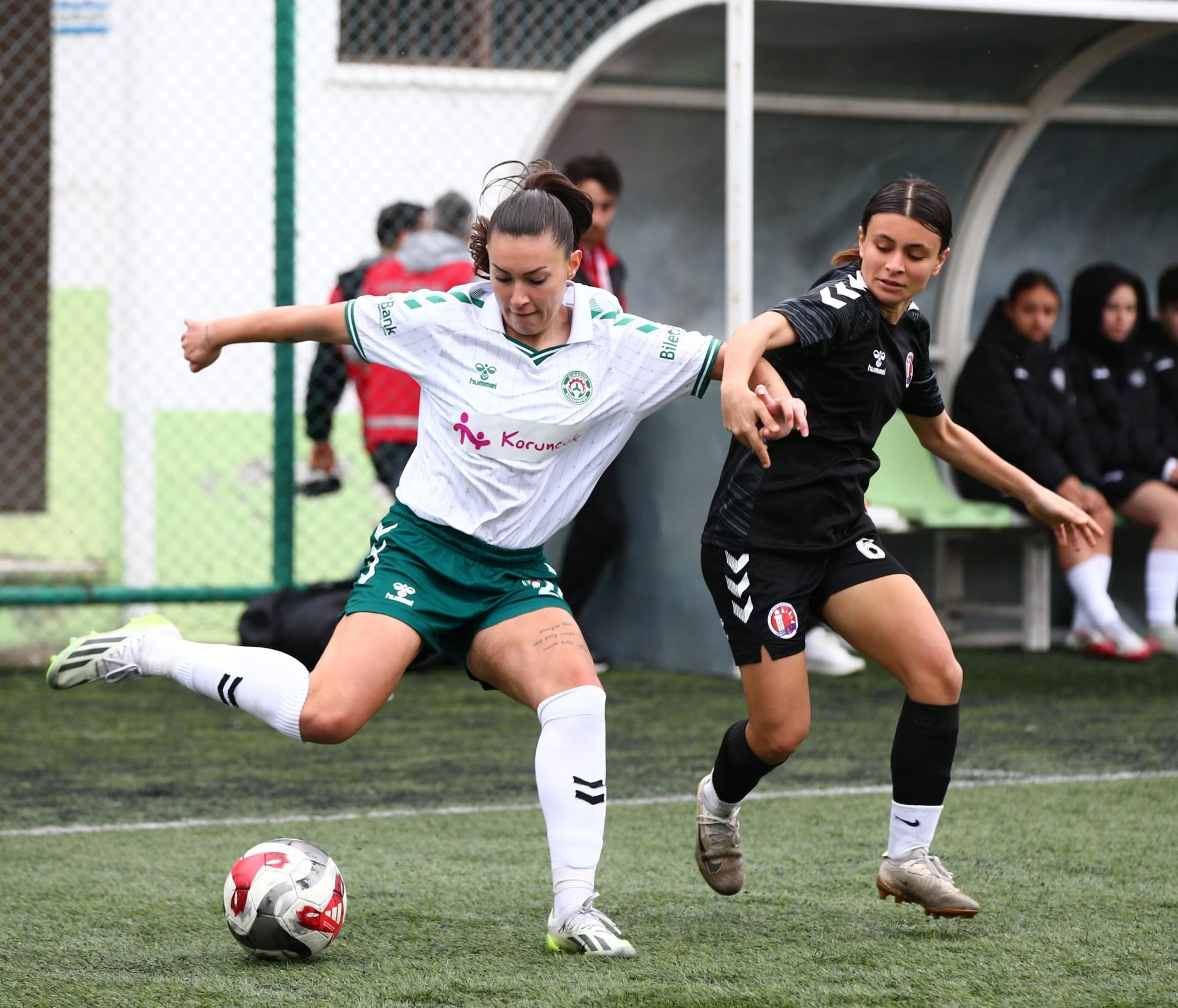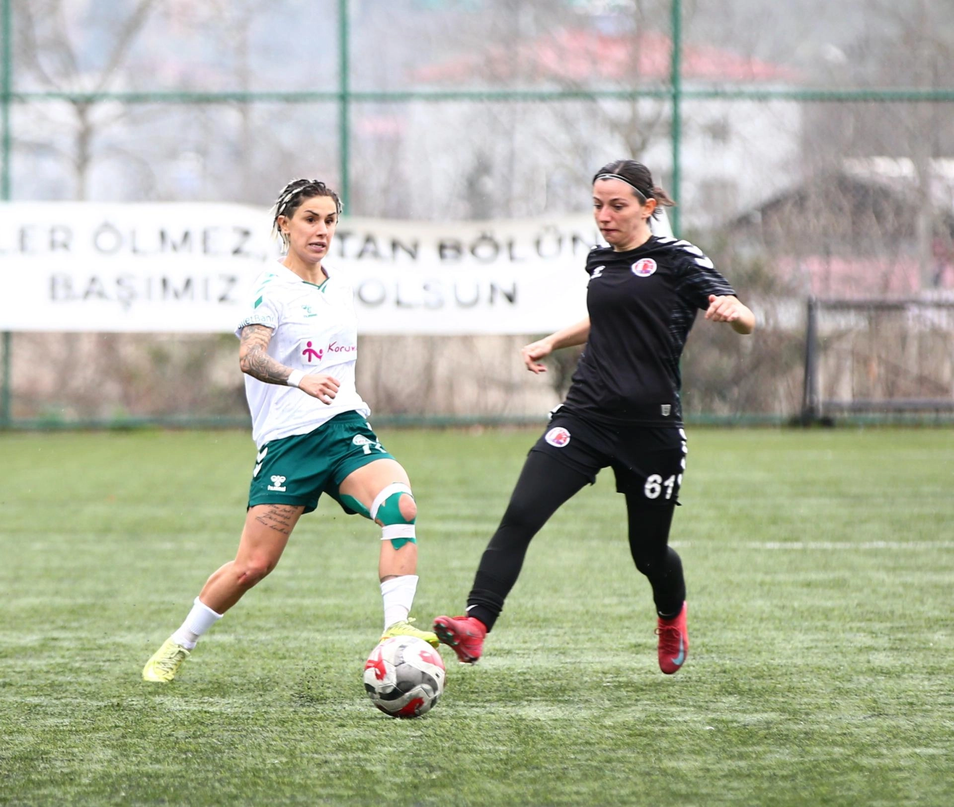 Giresun 75. Yıl Sahası'ndaki müsabakanın ilk yarısını, ev sahibi ekip Zeynep Gamze Koçer ve Neslihan Demirdögen'in golleriyle 2-0 önde bitirdi.