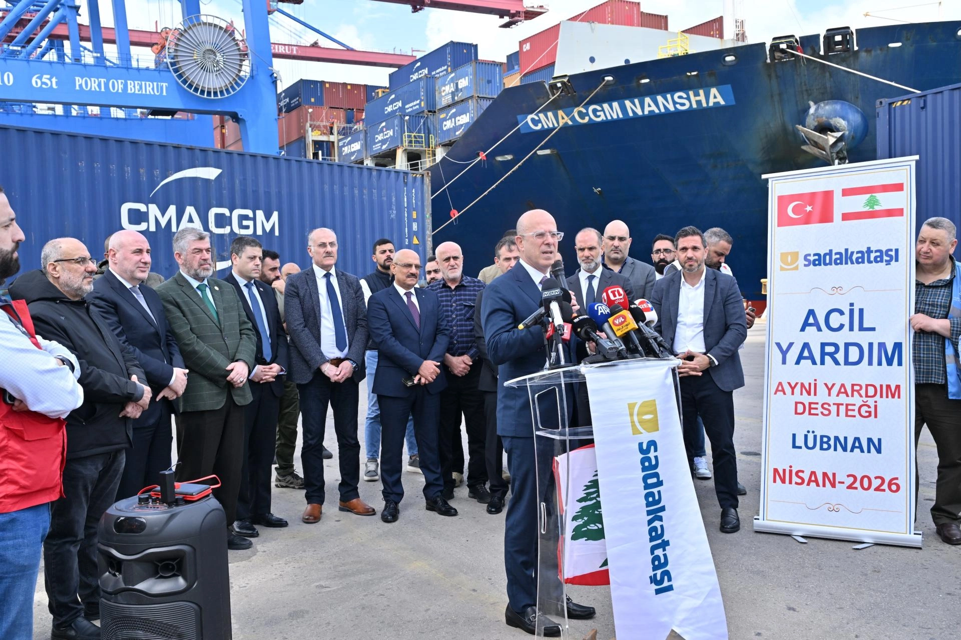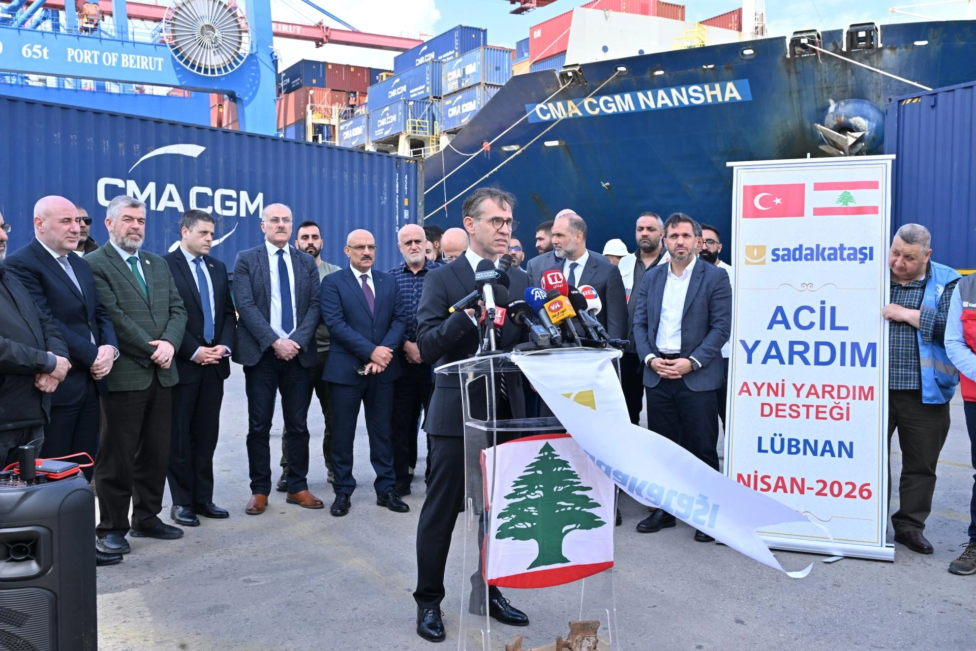 Törende konuşan Sadakataşı Derneği Başkanı Kemal Özdal ise Lübnan devleti ve halkının yanında olduklarını belirterek, "2025 yılında gemi yoluyla 1000 tonluk yardım ulaştırdığımız gibi bugün de 38 konteynerden oluşan, yaklaşık 3 milyon dolar değerindeki yardımlarımızı Lübnan’a ulaştırmış bulunuyoruz." dedi.
