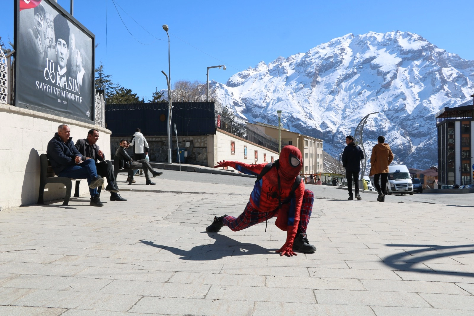 HAKKARİ (AA) - Türkiye'yi "Örümcek Adam" kostümüyle gezme hayaliyle memleketi İzmir'den yola çıkan Ayaz Salih Koç, 71'inci şehir olarak geldiği Hakkari'de vatandaşlarla buluştu.