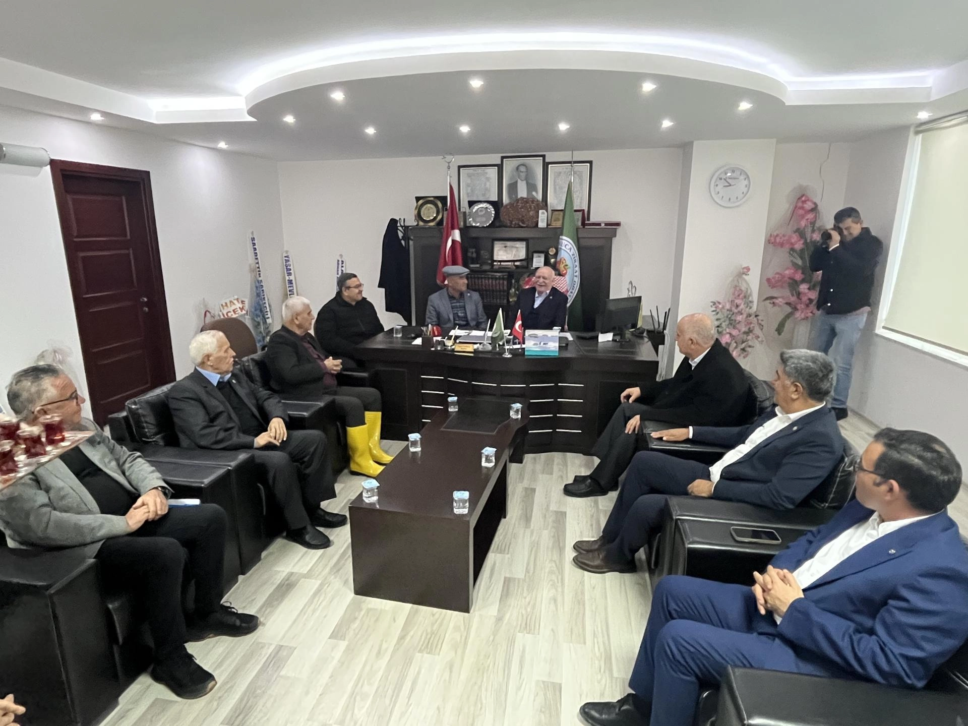 Şemsi Bayraktar'ın Kumluca ziyaretine Kumluca Ziraat Odası Başkanı Hidayet Kökçe, Tarım ve Orman İlçe Müdürü İsa Akşit, çevre ilçelerin ziraat odası başkanları, mahalle muhtarları ve çiftçiler eşlik etti.
