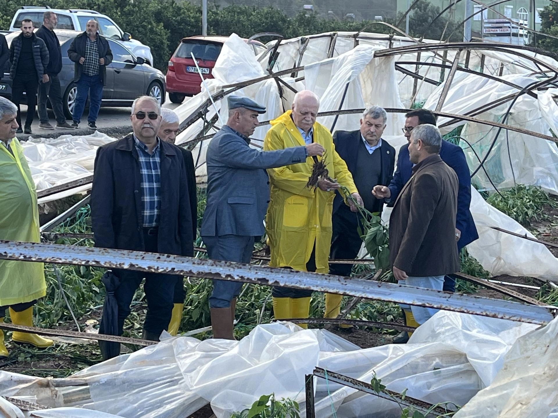 Hortum nedeniyle yıkılan bir sera önünde gazetecilere açıklama yapan Bayraktar, sahada hasar tespit çalışmalarının sürdüğünü belirterek, çiftçilerin yaralarının sarılması için gerekli girişimlerde bulunduklarını ifade etti.