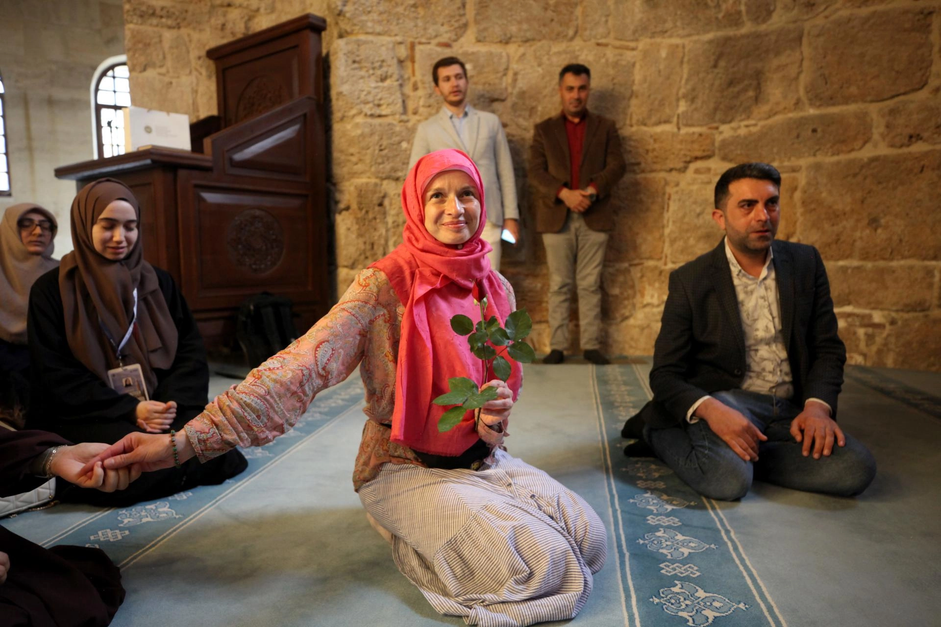 Bu süreçte oğlu Emir'in kaza geçirmesi üzerine kendini iyi hissettiği için camilere daha çok giden Ukraynalı kadın, Kaleiçi'ndeki Şehzade Korkut Camisi'ni ziyareti sırasında Kültürlerarası İletişim Merkezi (KİM) Vakfı gönüllüleriyle tanıştı.