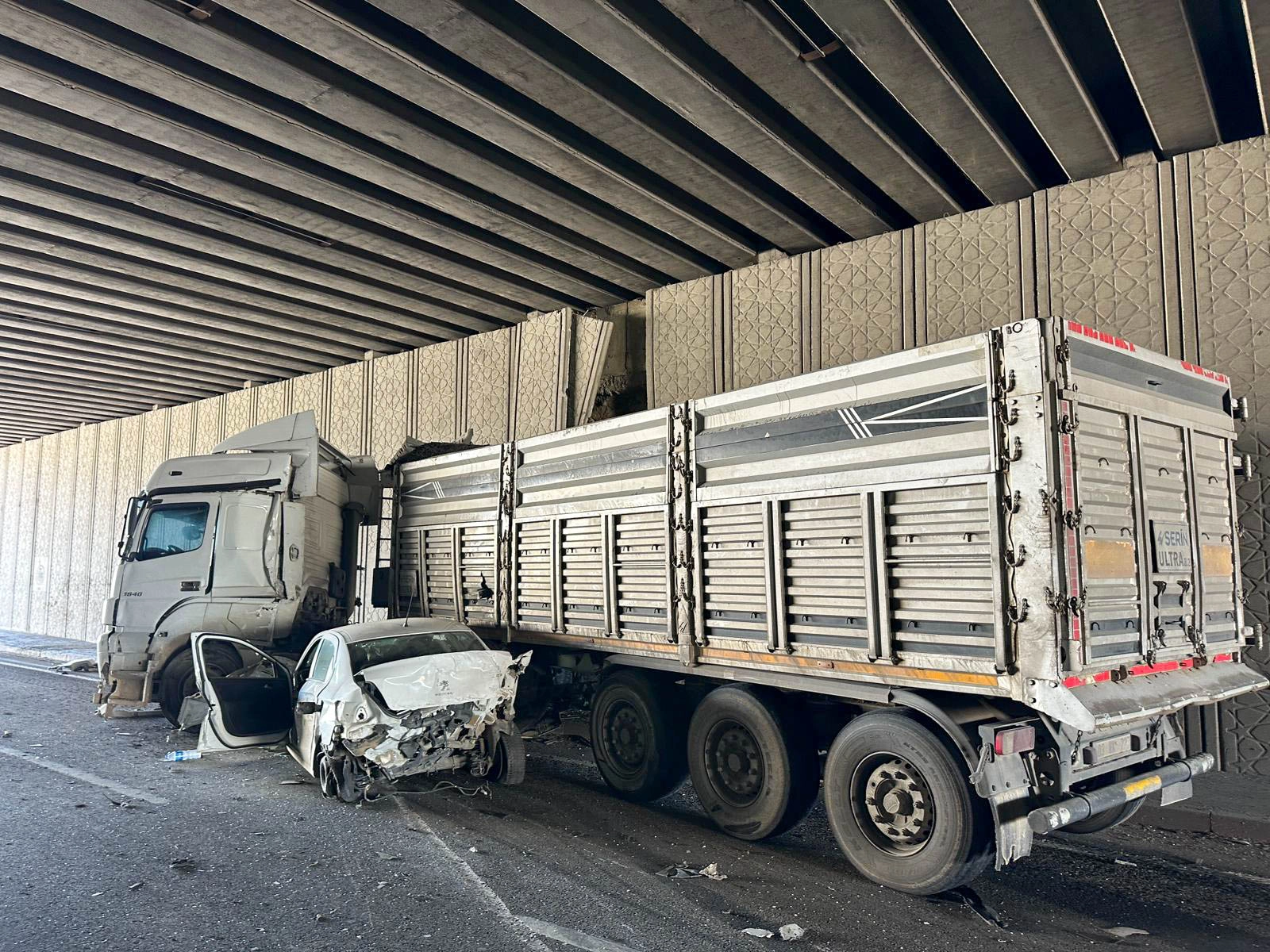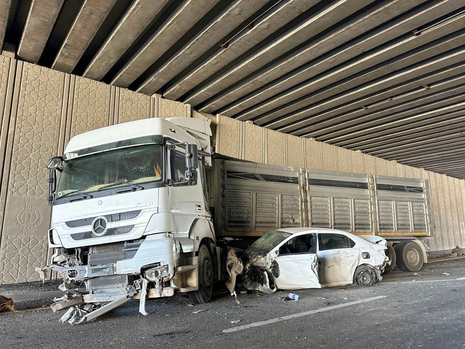 Kazayı yara almadan atlatan tır sürücüsü ise ifadesi alınmak üzere emniyete götürüldü.