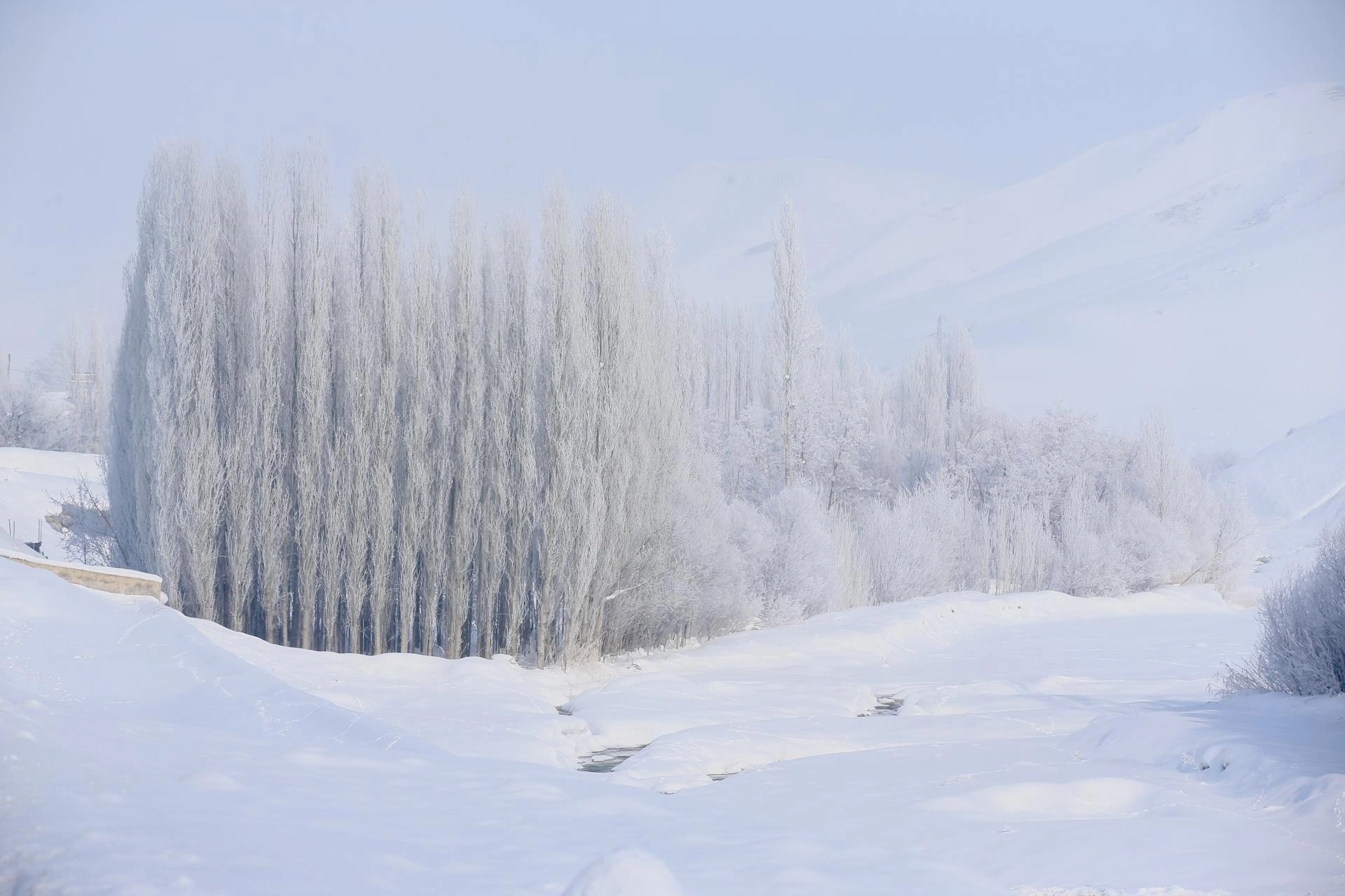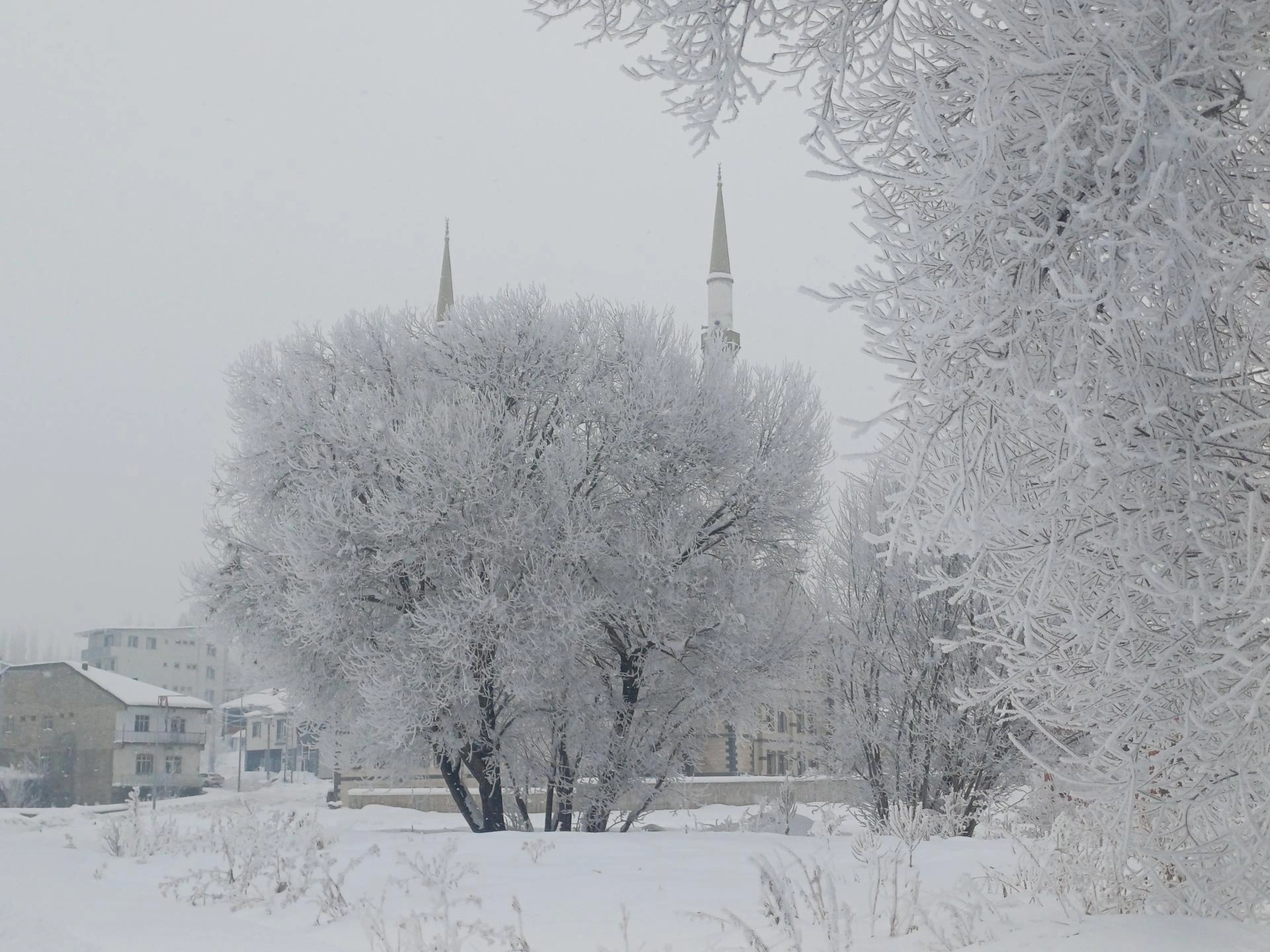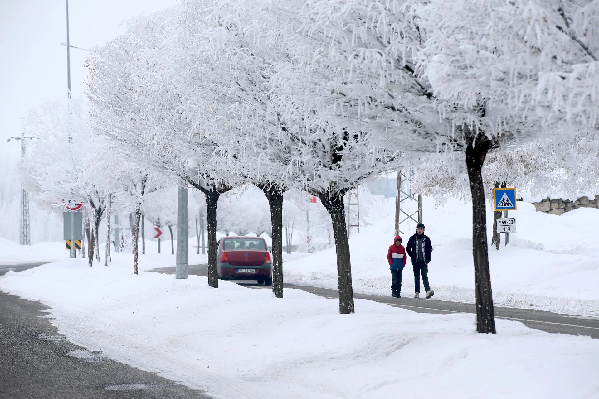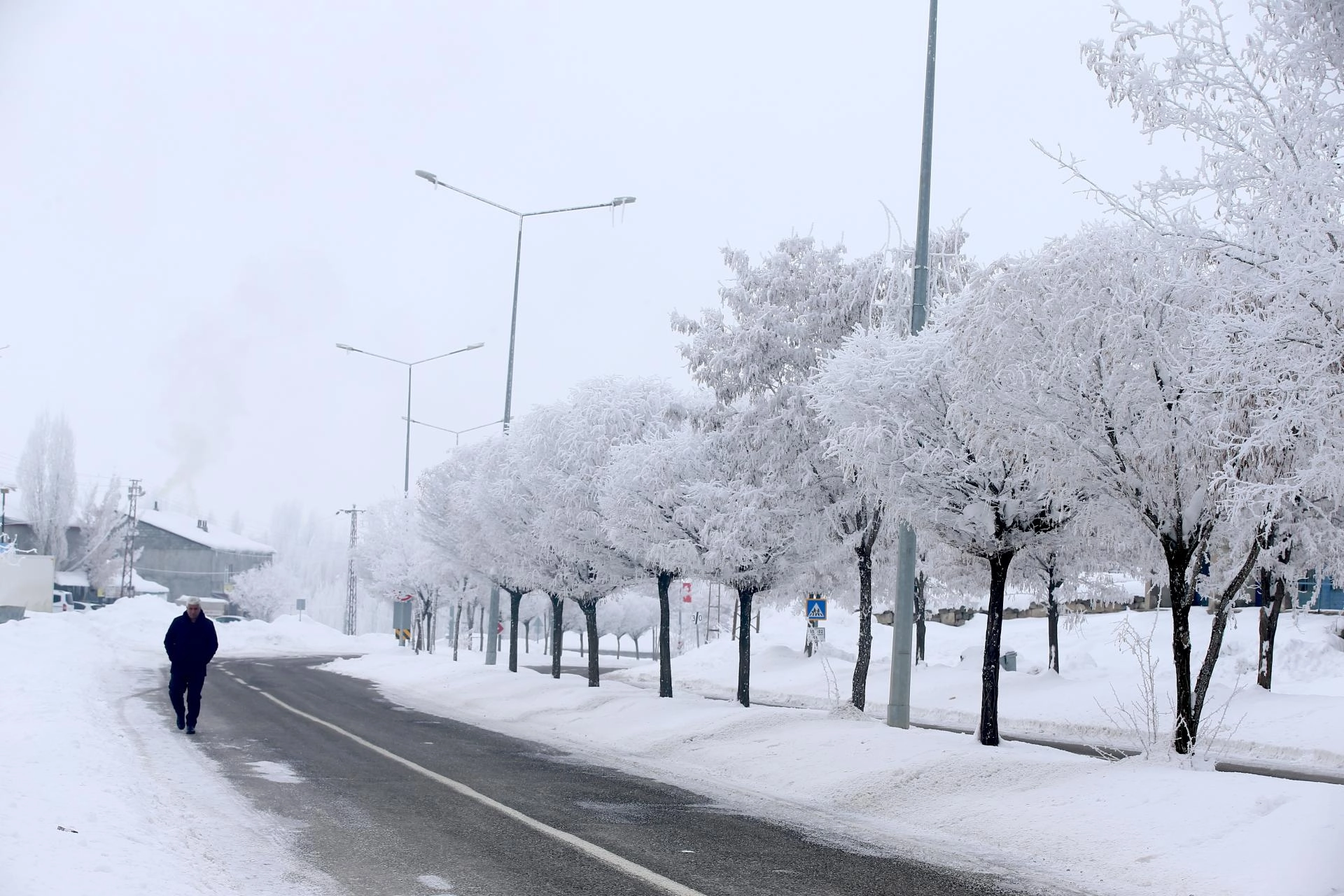 Soğuk havanın etkisini sürdürdüğü kentte, ağaçlar kırağıyla kaplandı.