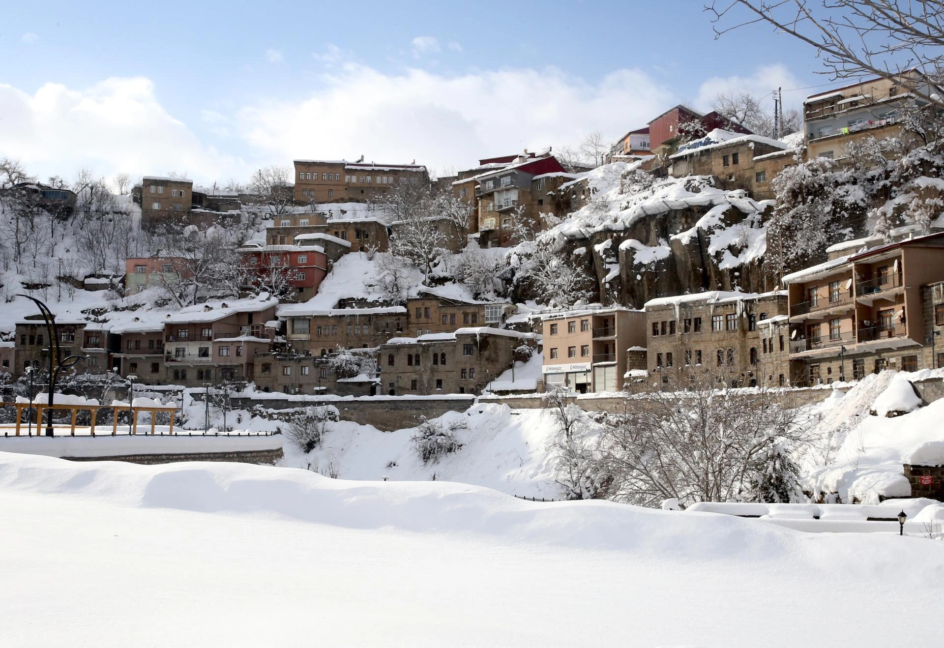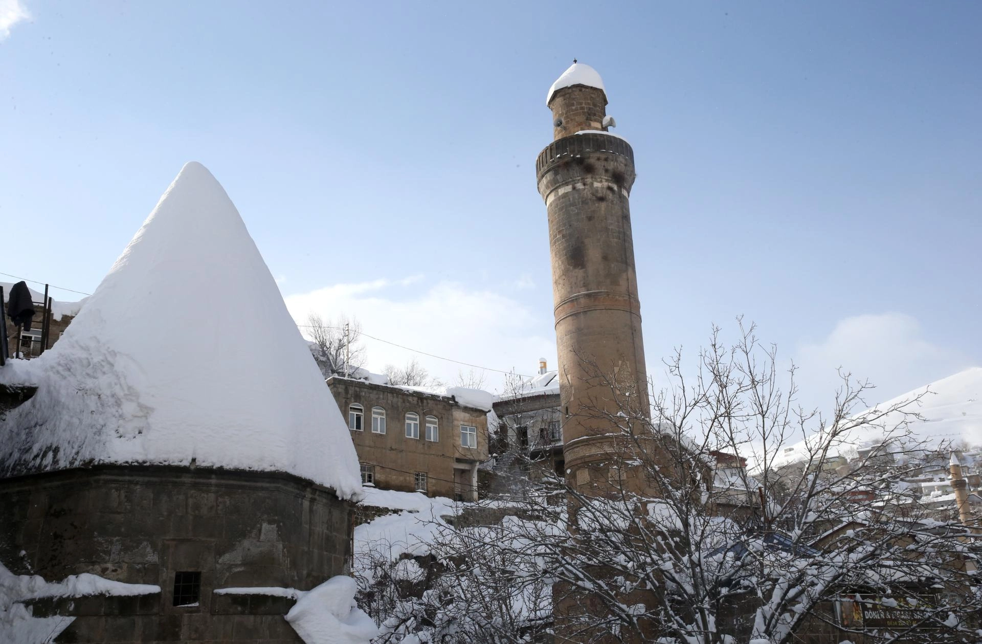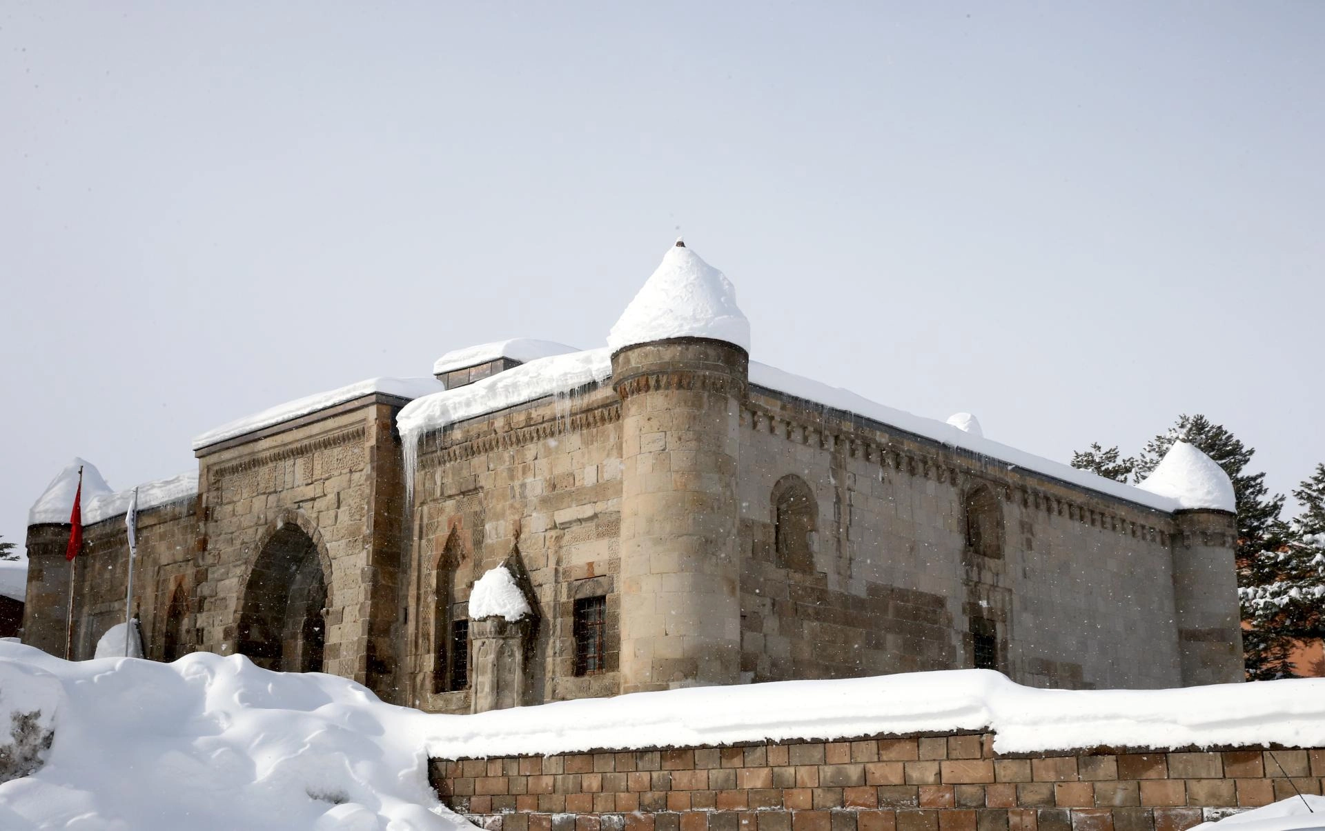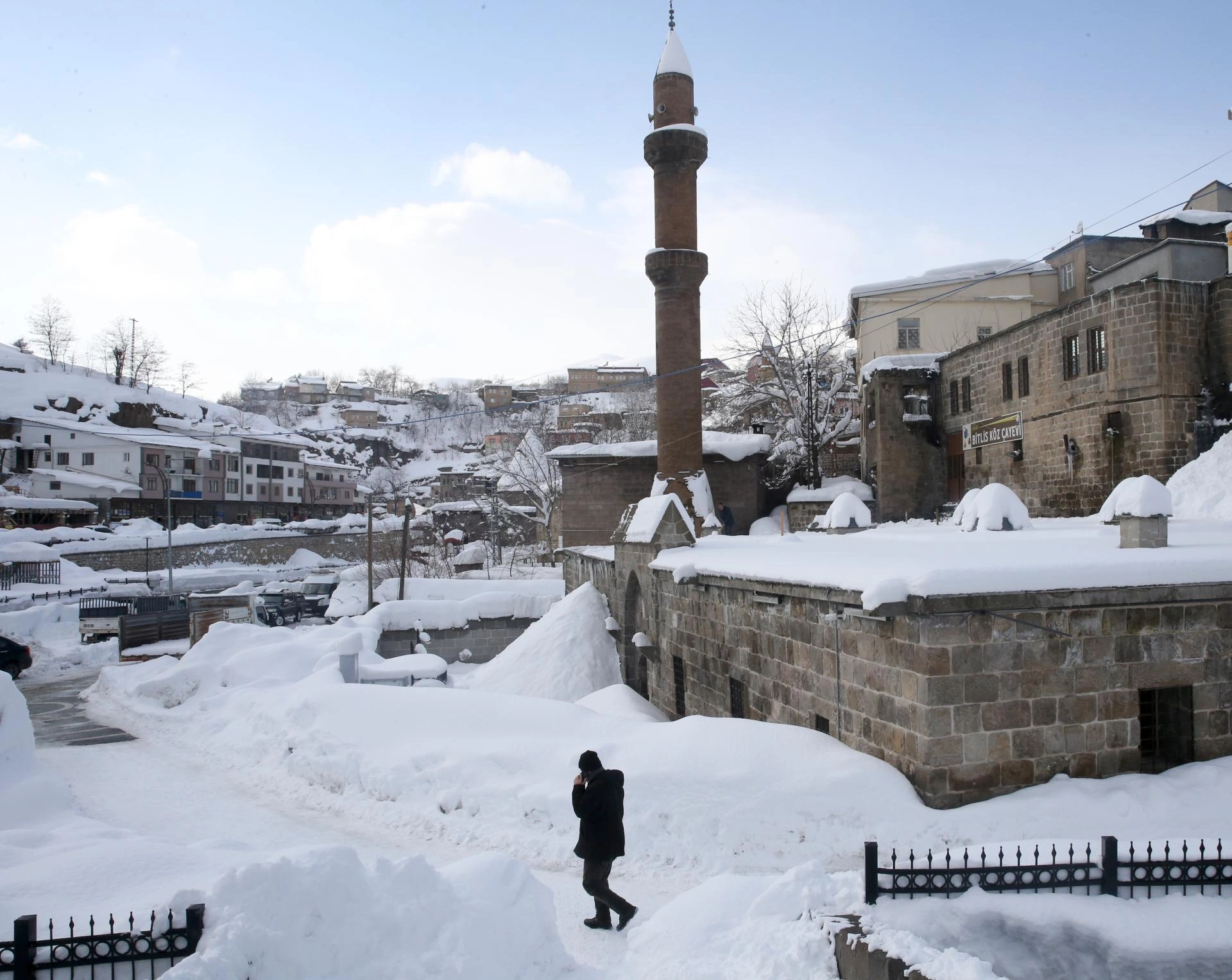 Soğuk havanın etkisini sürdürdüğü kentte, karla kaplanan tarihi yapılar da güzel görüntü oluşturdu.