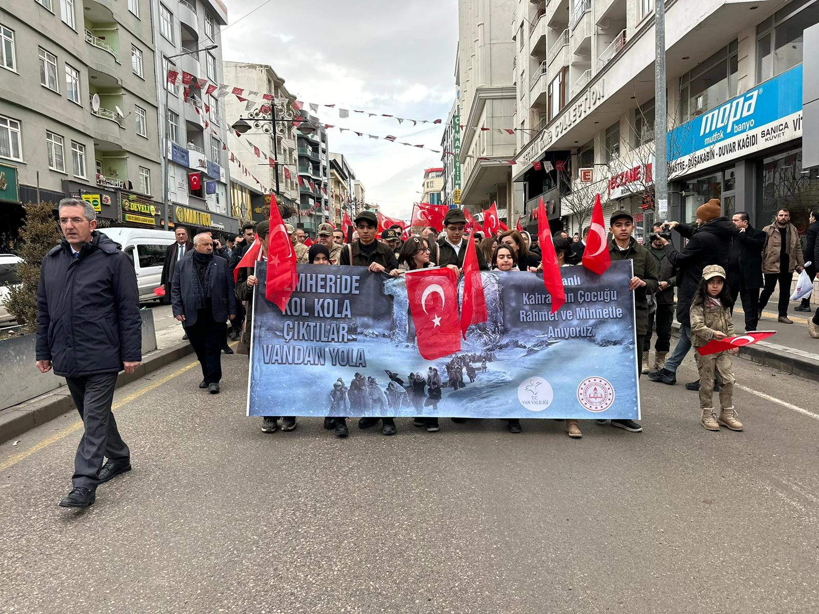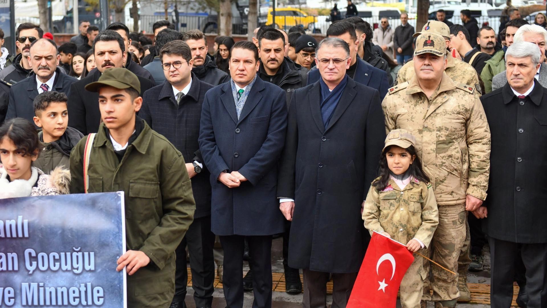 İl Milli Eğitim Müdürlüğünce düzenlenen anma programı için Kazım Karabekir Caddesi'nde bir araya gelen öğrenci ve öğretmenler, Türk bayraklarıyla Kurtuluş Parkı'ndaki 120 Vanlı Kahraman Çocuklar Anıtı'na kadar yürüdü.