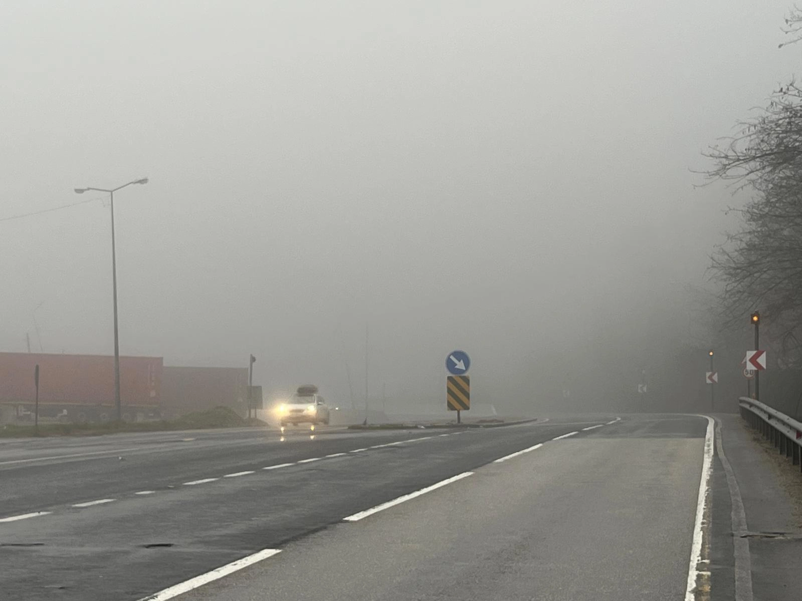 Sis nedeniyle görüş mesafesinin yer yer 40 metreye kadar düştüğü güzergahta sürücüler dikkatli ilerledi.