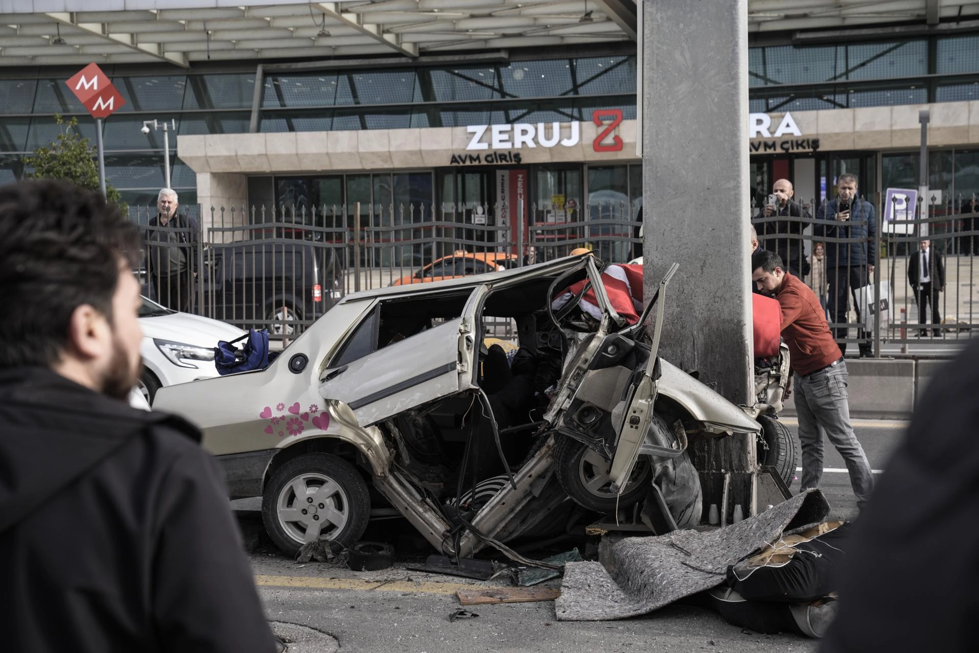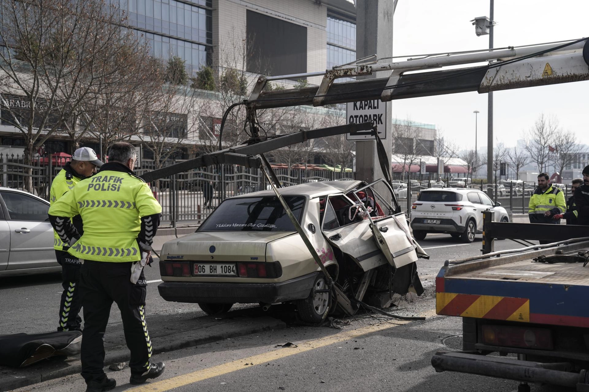 Çevredekilerin ihbarı üzerine kaza yerine polis, itfaiye ve sağlık ekipleri sevk edildi. Otomobilde sıkışan sürücü, itfaiye ekiplerince kurtarıldı.