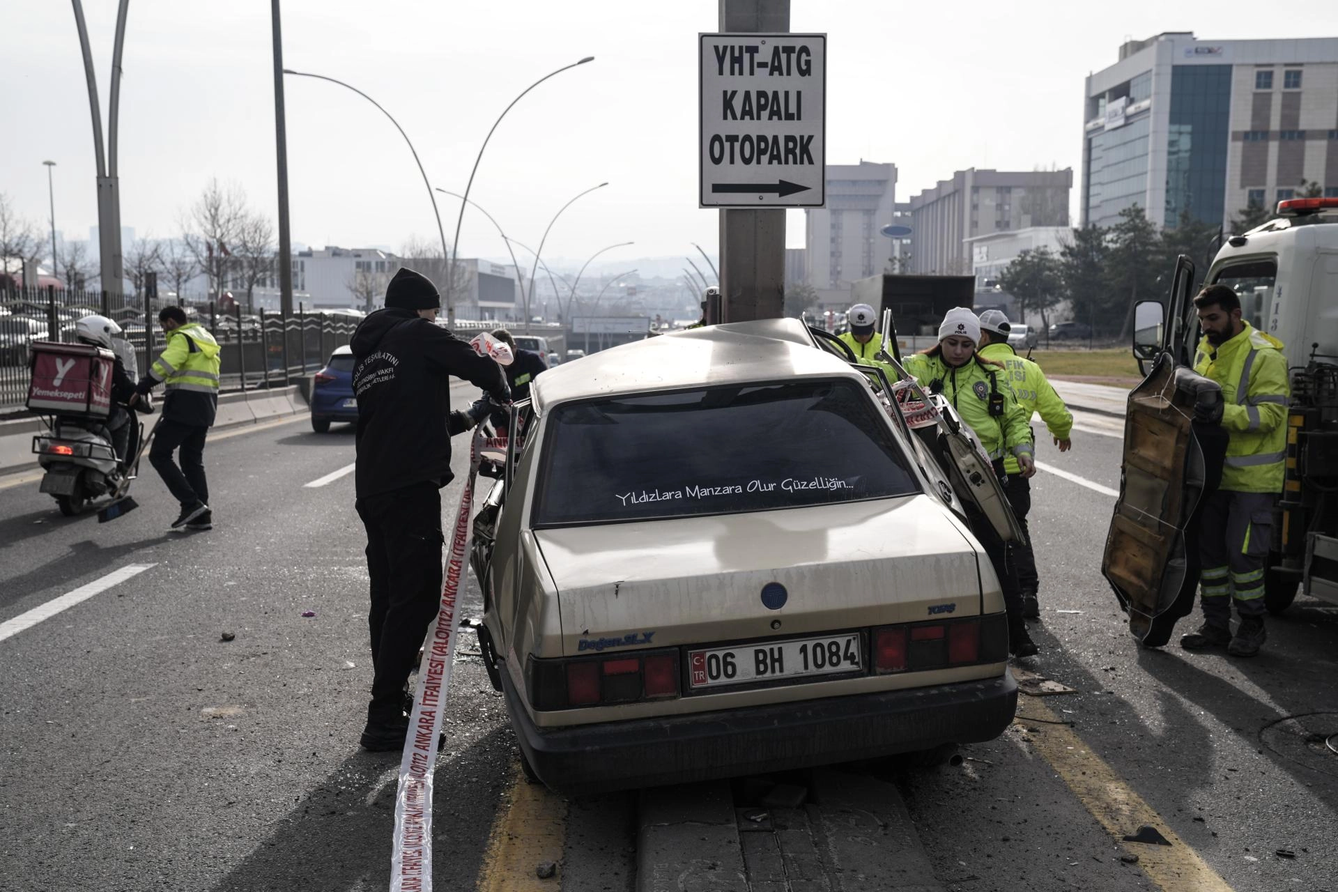 E.K. (22) idaresindeki 06 BH 1084 plakalı otomobil, Celal Bayar Bulvarı Ankara Tren Garı önünde kontrolden çıkarak refüjdeki tabela direğine çarptı.