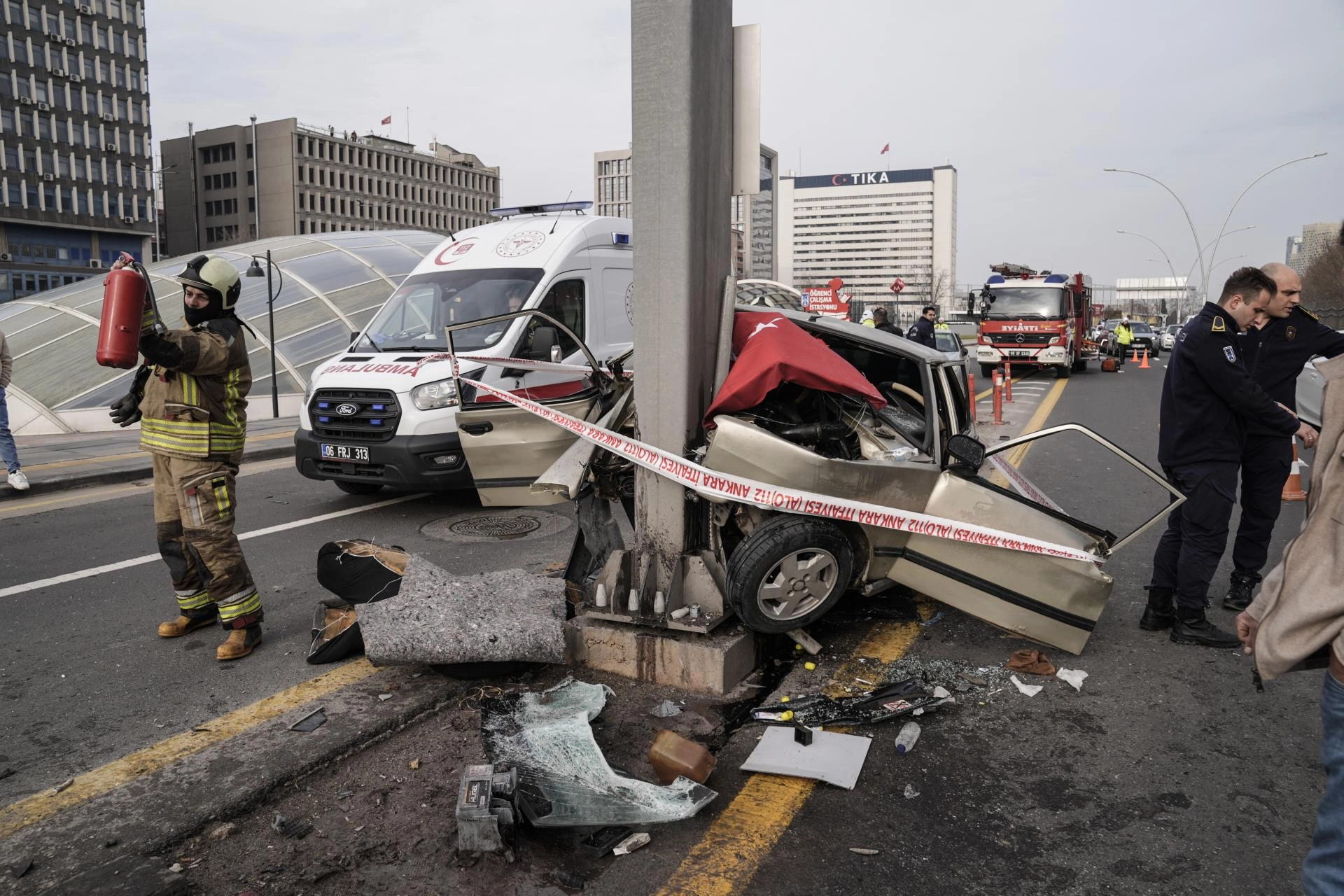 ANKARA (AA) - Ankara'nın Çankaya ilçesinde direğe çarpan otomobilin sürücüsü yaralandı.