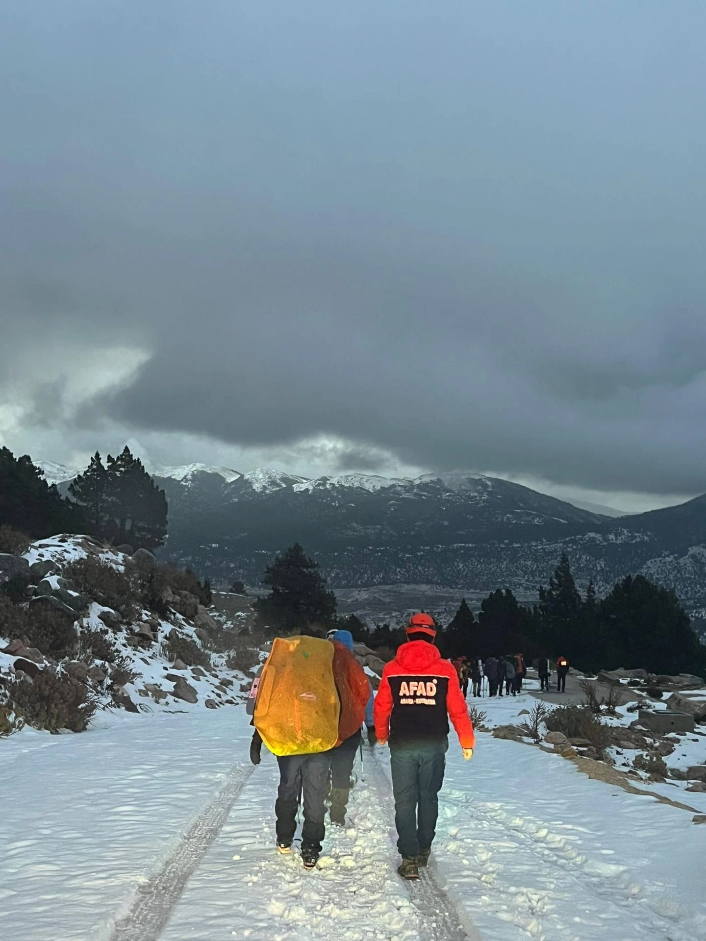 Dağda etkili olan fırtına nedeniyle çadırları zarar gören grup üyeleri, 112 Acil Çağrı Merkezini arayarak yardım istedi.