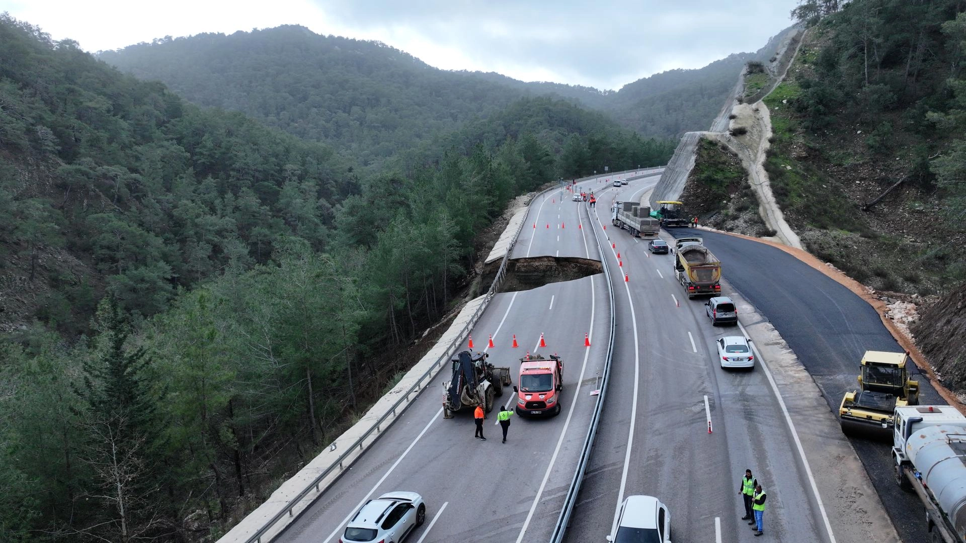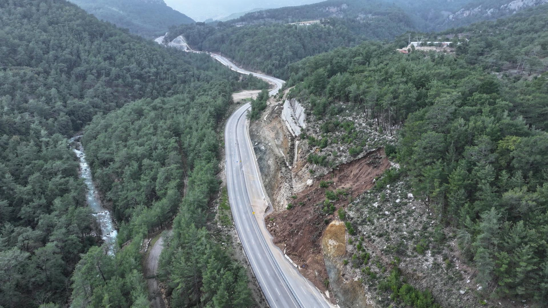 Kemer ile Kumluca ilçelerini birbirine bağlayan kara yolunda göçük ve heyelan meydana geldi. Yolda oluşan yaklaşık 10 metrelik çukur nedeniyle bölgede ulaşım tek şeritten sağlanıyor.