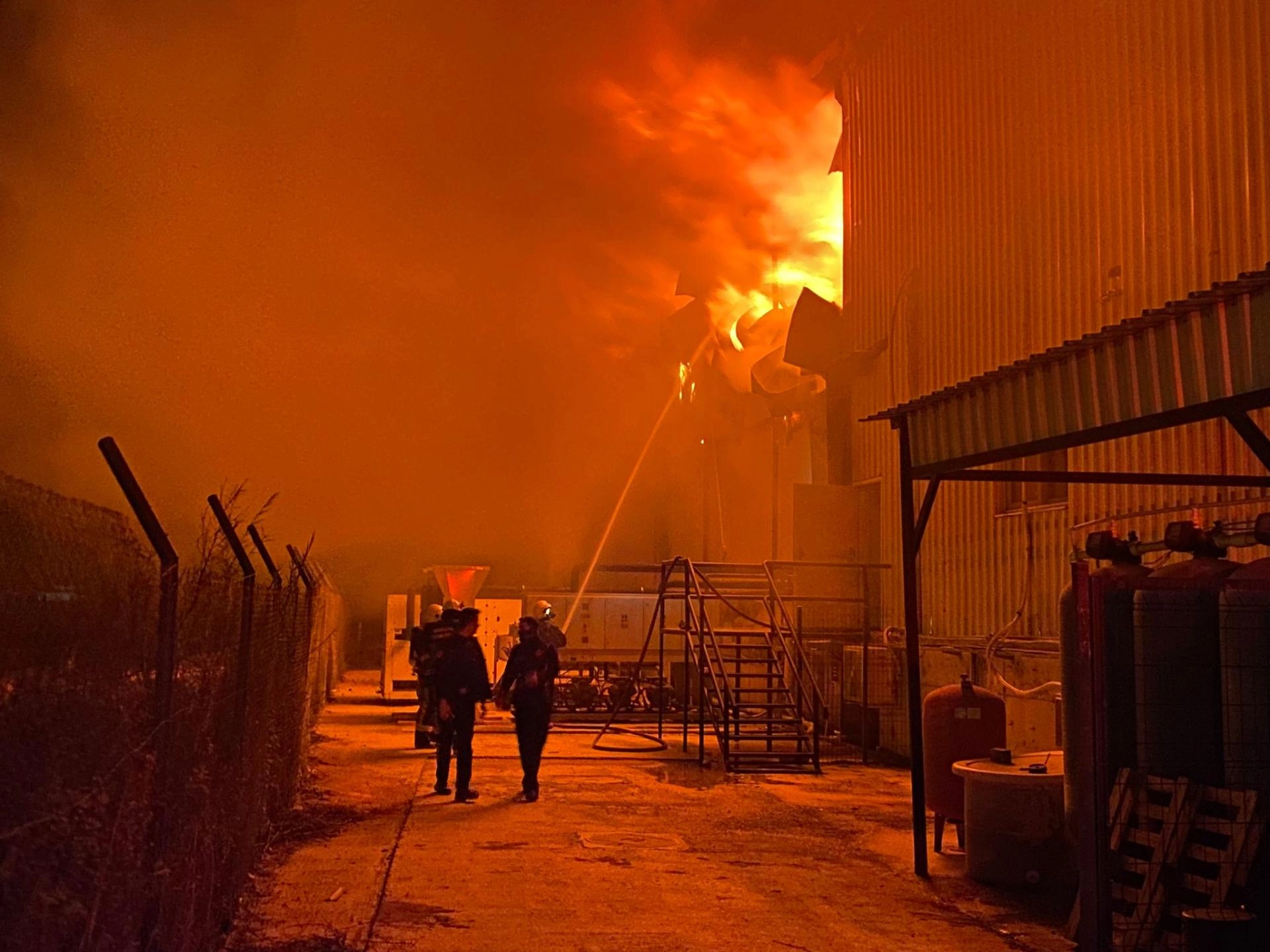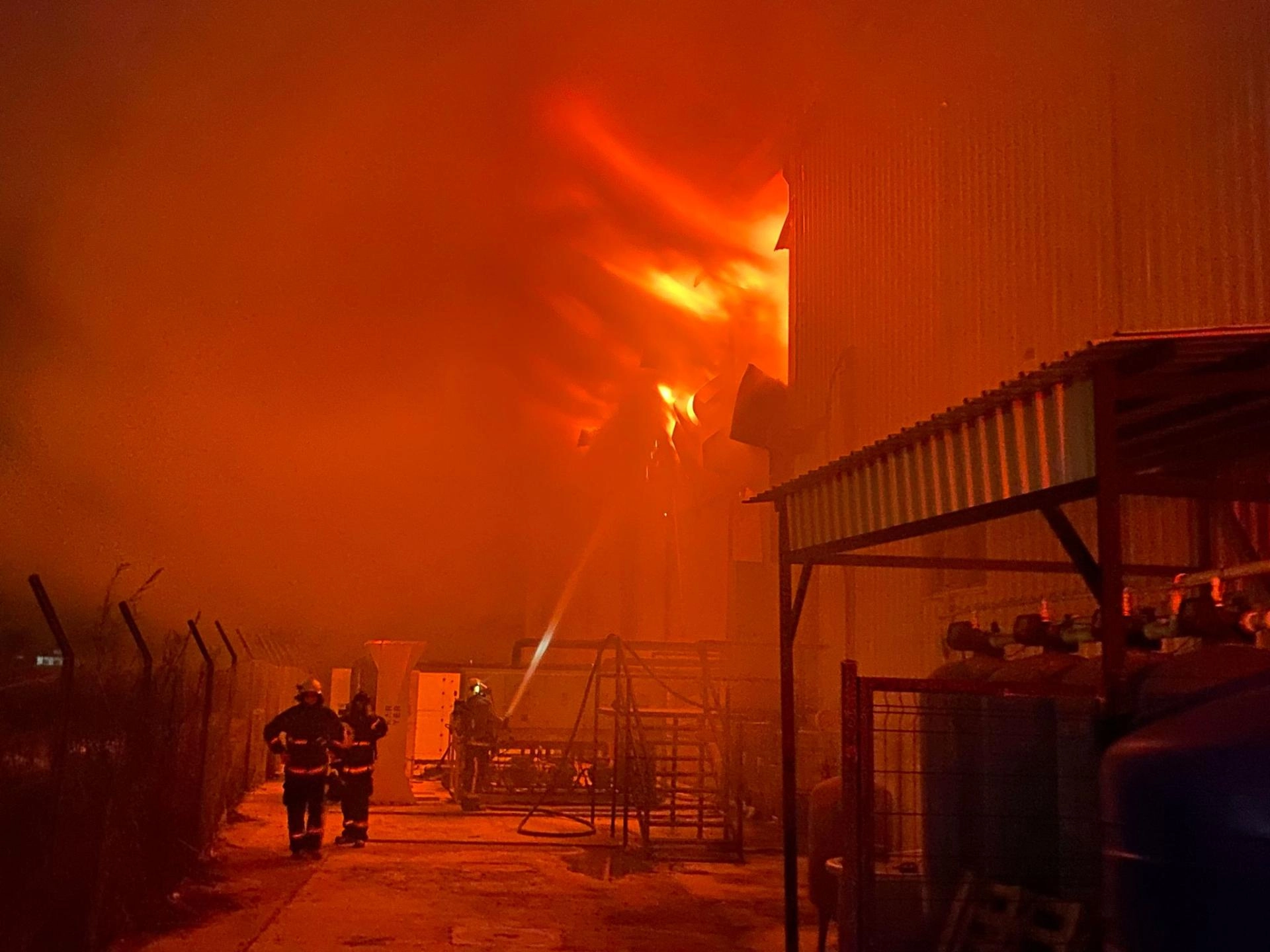 Bir firmaya ait Yukarıkocayatak Mahallesi'nde bulunan soğuk hava deposunda henüz belirlenemeyen nedenle yangın çıktı.