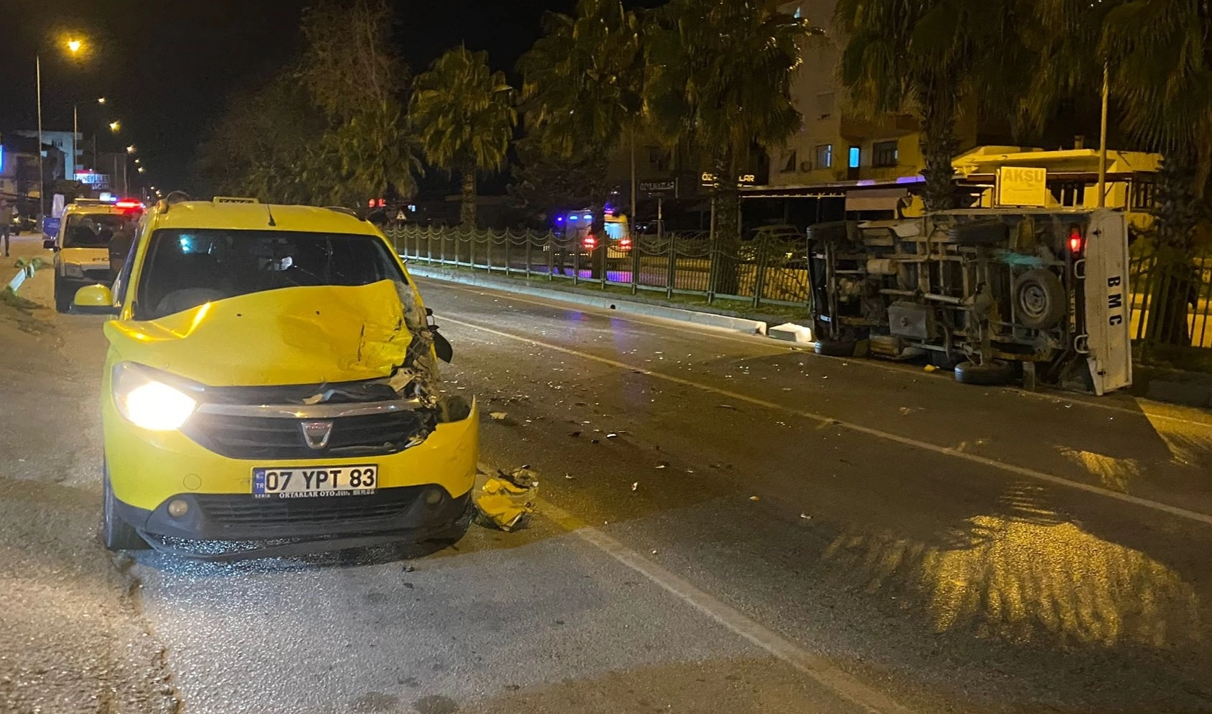Orta Mahalle Gedik kavşağı yakınlarında 07 YPT 83 plakalı taksi ile aynı istikametteki O.B. idaresindeki 07 EAB 65 plakalı kamyonet çarpıştı.