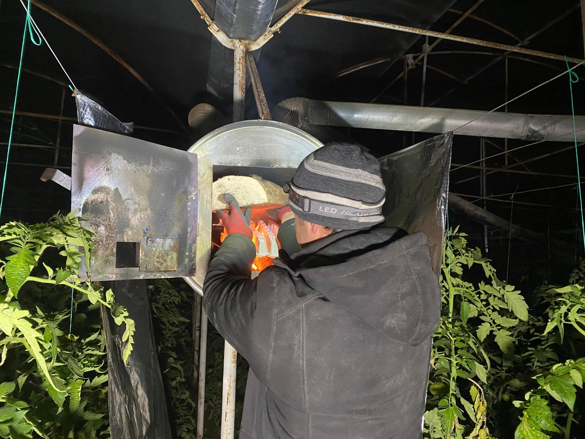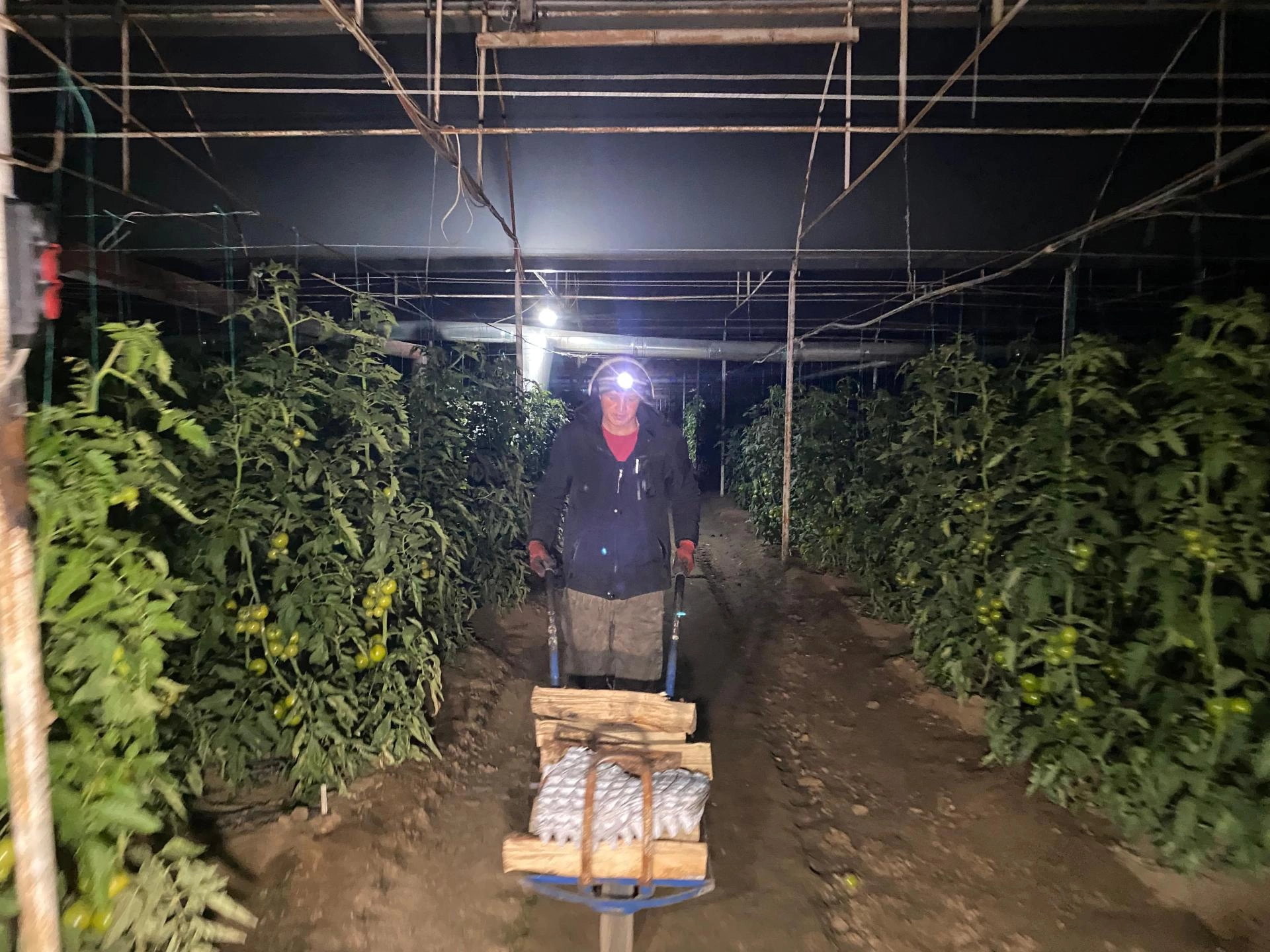 İhsaniye Mahallesi'nde bulunan 27 dönümlük domates serasında da don nöbeti gece boyunca sürdü.