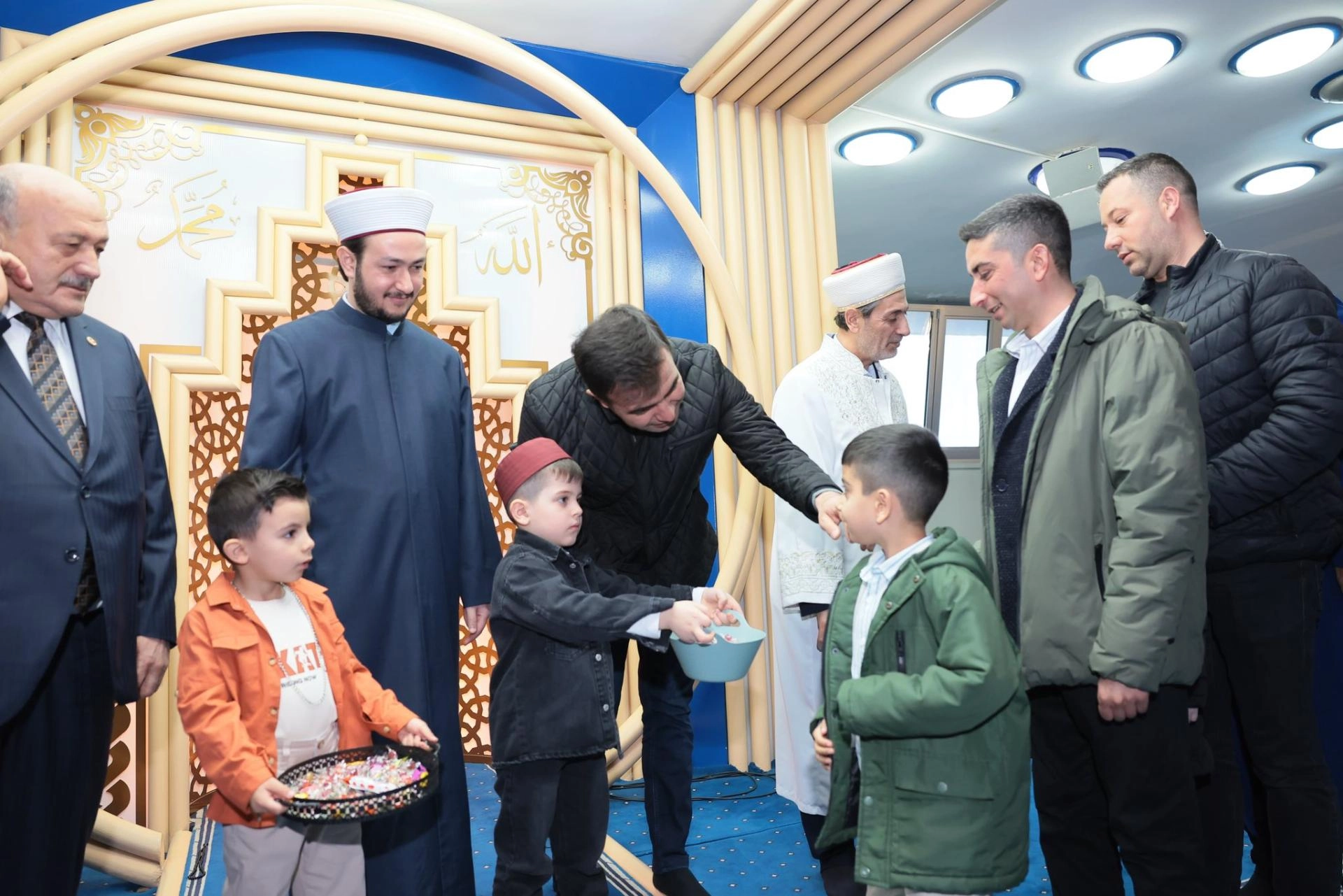 Cami çıkışlarında vatandaşlara çikolata, şeker, lokum ve kolonya ikramında bulunuldu.
