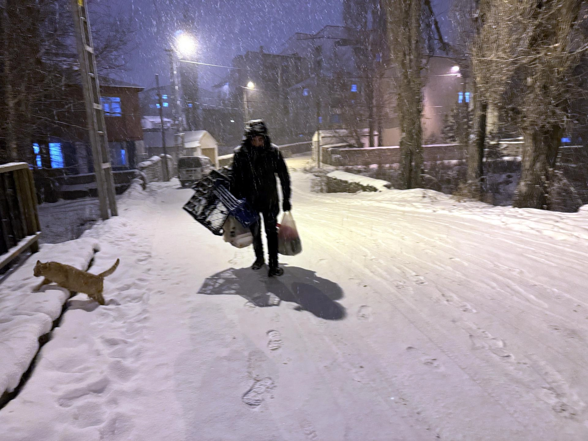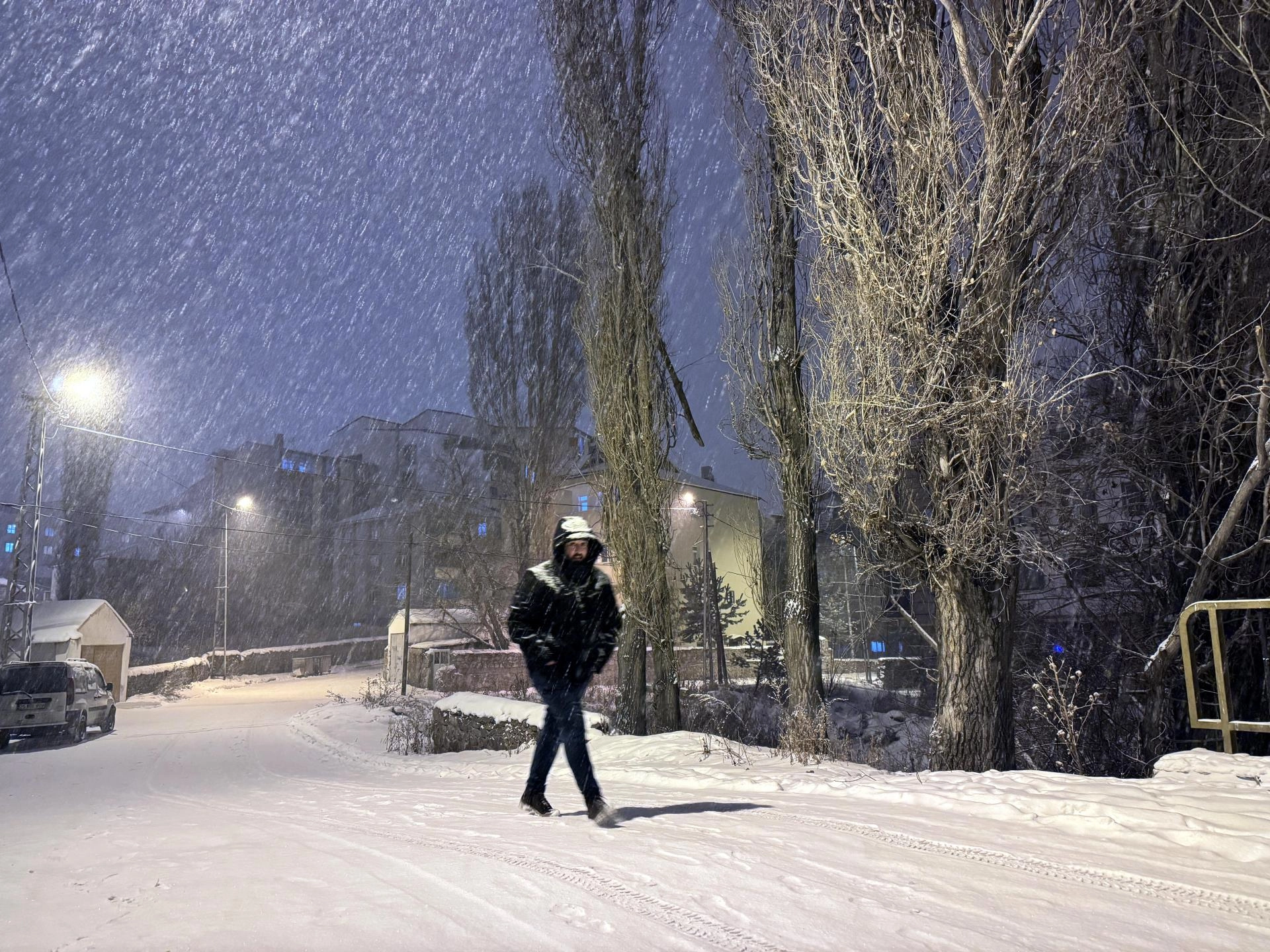 Kars'ta da akşam saatlerinde başlayan ve zaman zaman etkisini artıran yoğun kar, hayatı olumsuz etkiliyor.