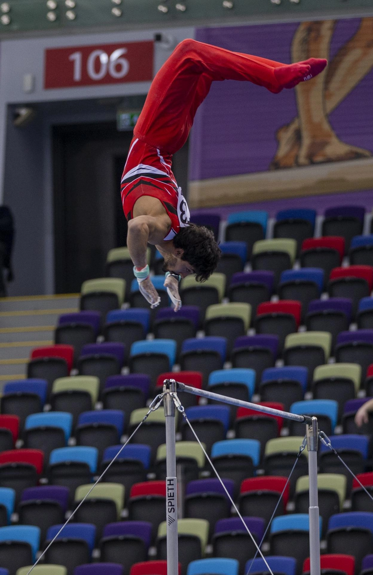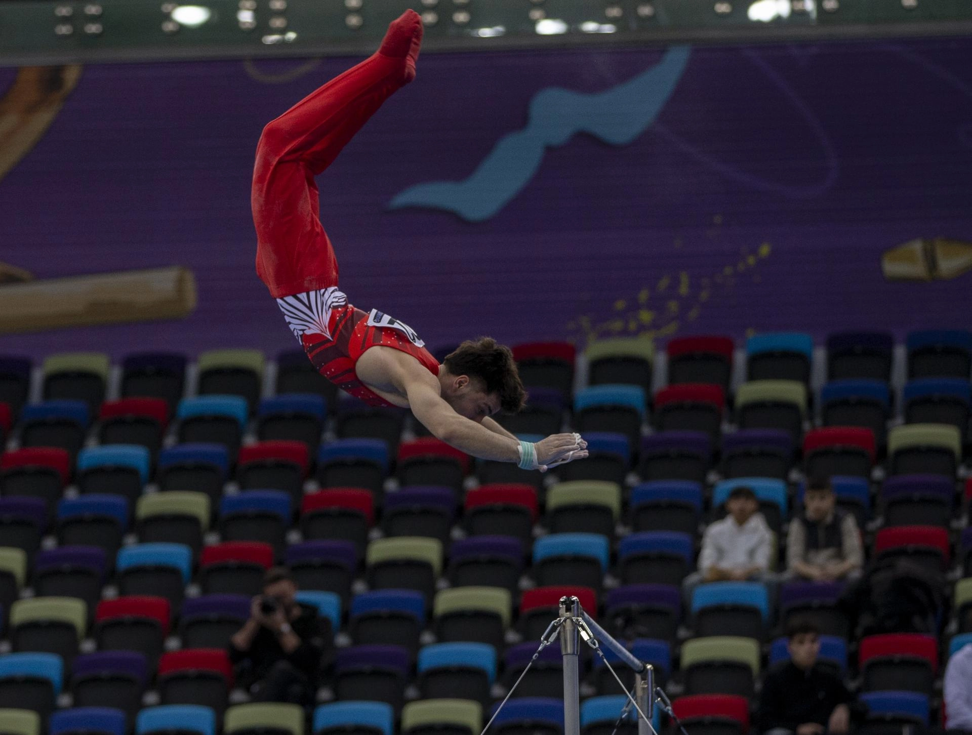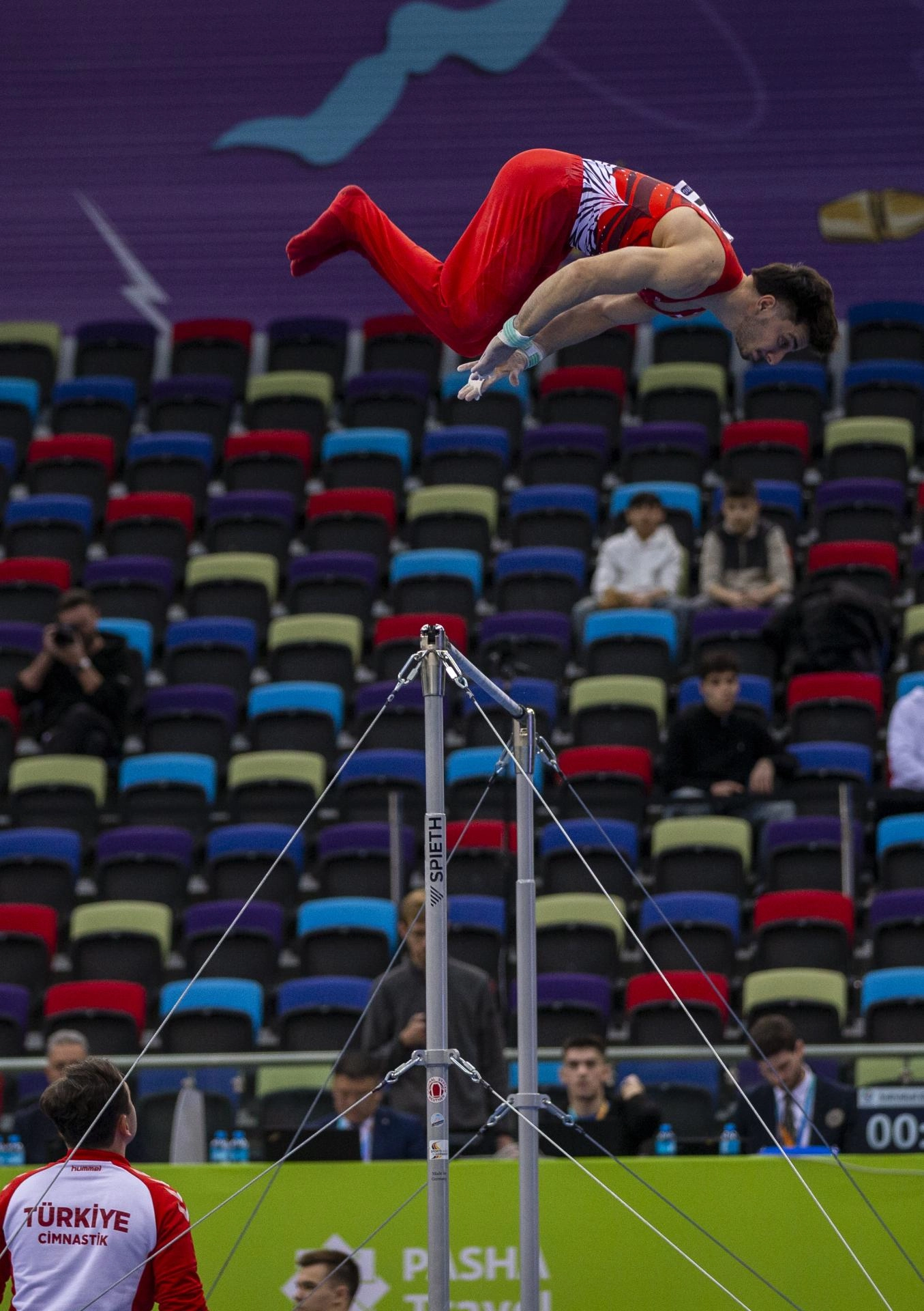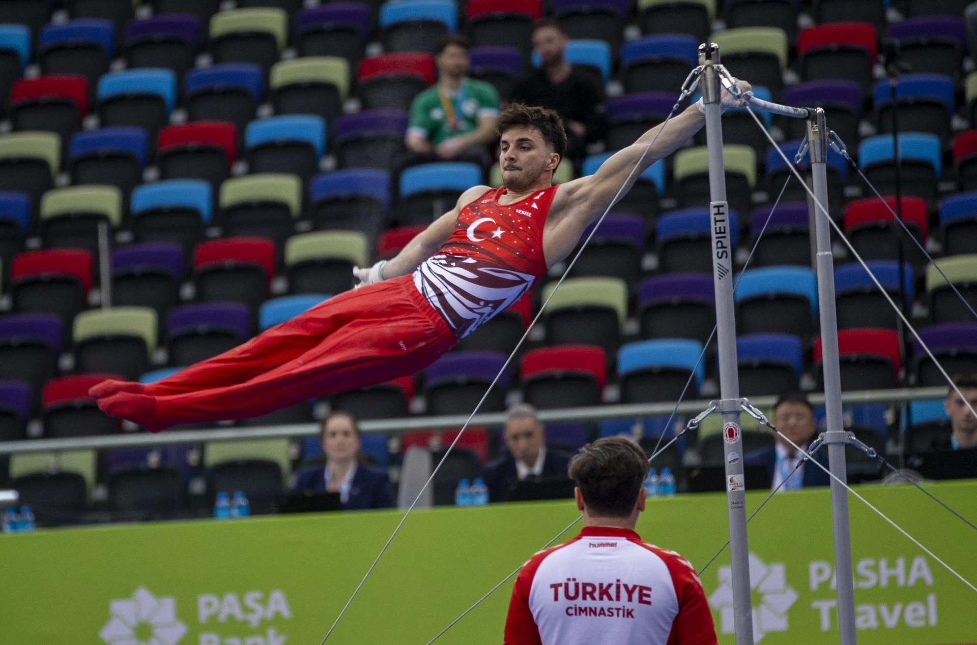 Başkent Bakü'de bulunan Uluslararası Cimnastik Arena'da başlayan yarışmanın ikinci gününde erkeklerde Mehmet Ayberk Koşak kulplu beygir aletinde, Kerem Şener barfiks, Hasan Bulut ise barfiks ve kulplu beygir aletlerinde mücadele etti.