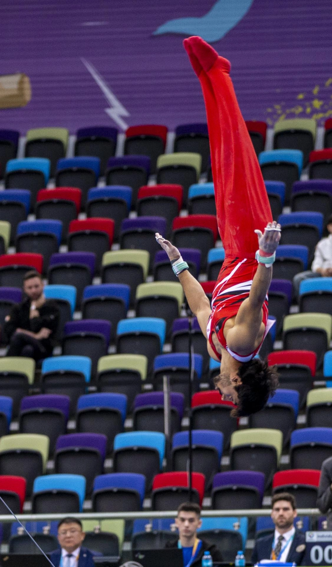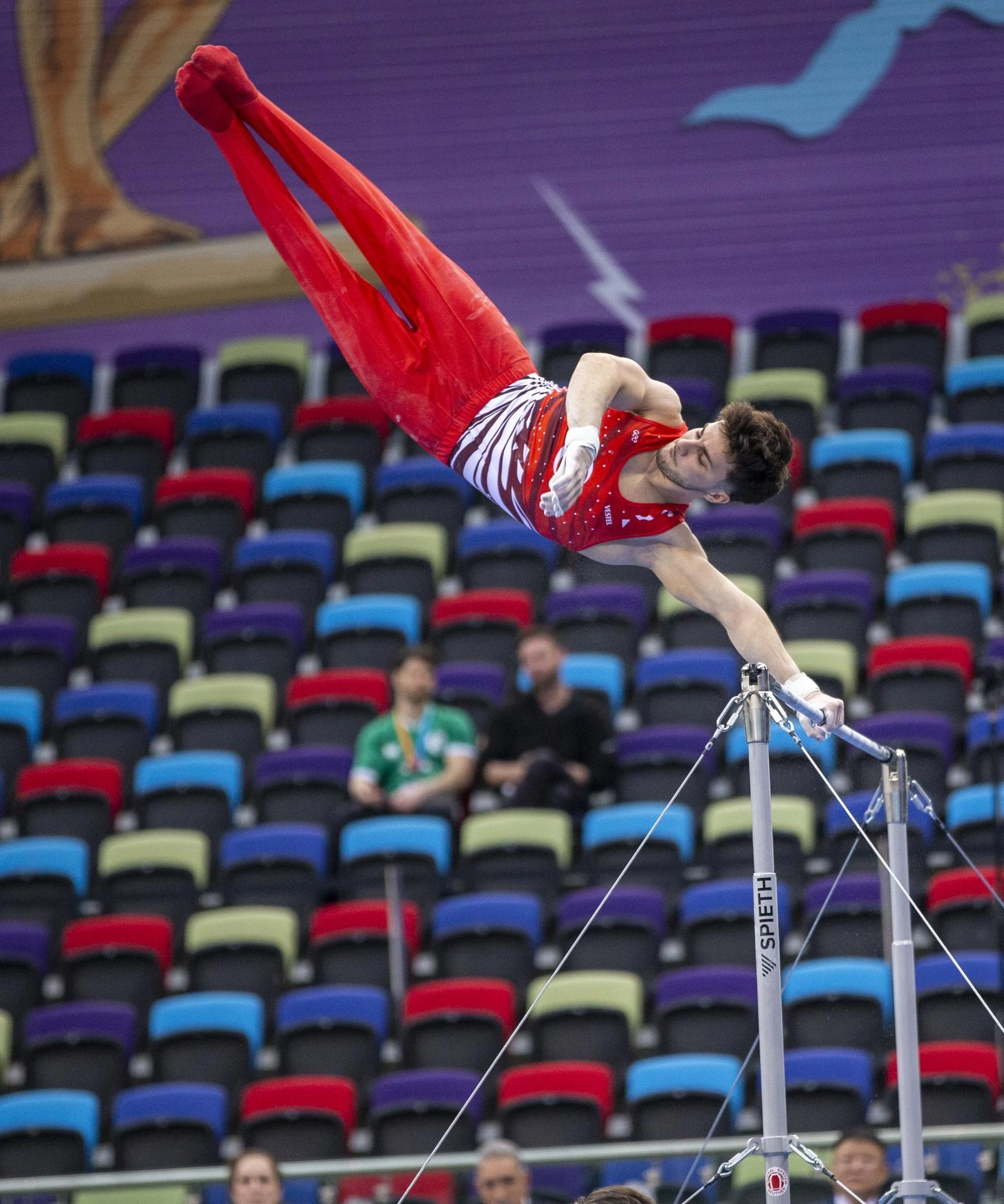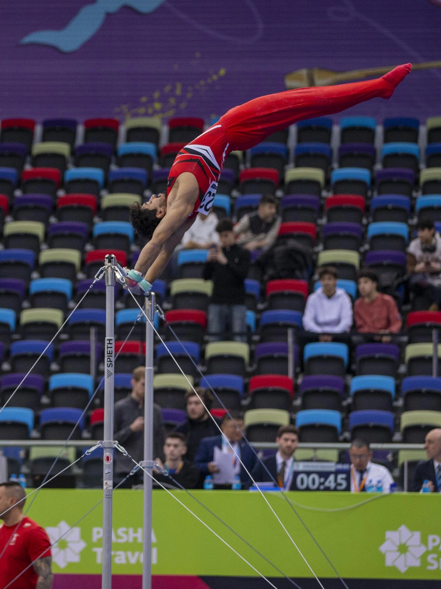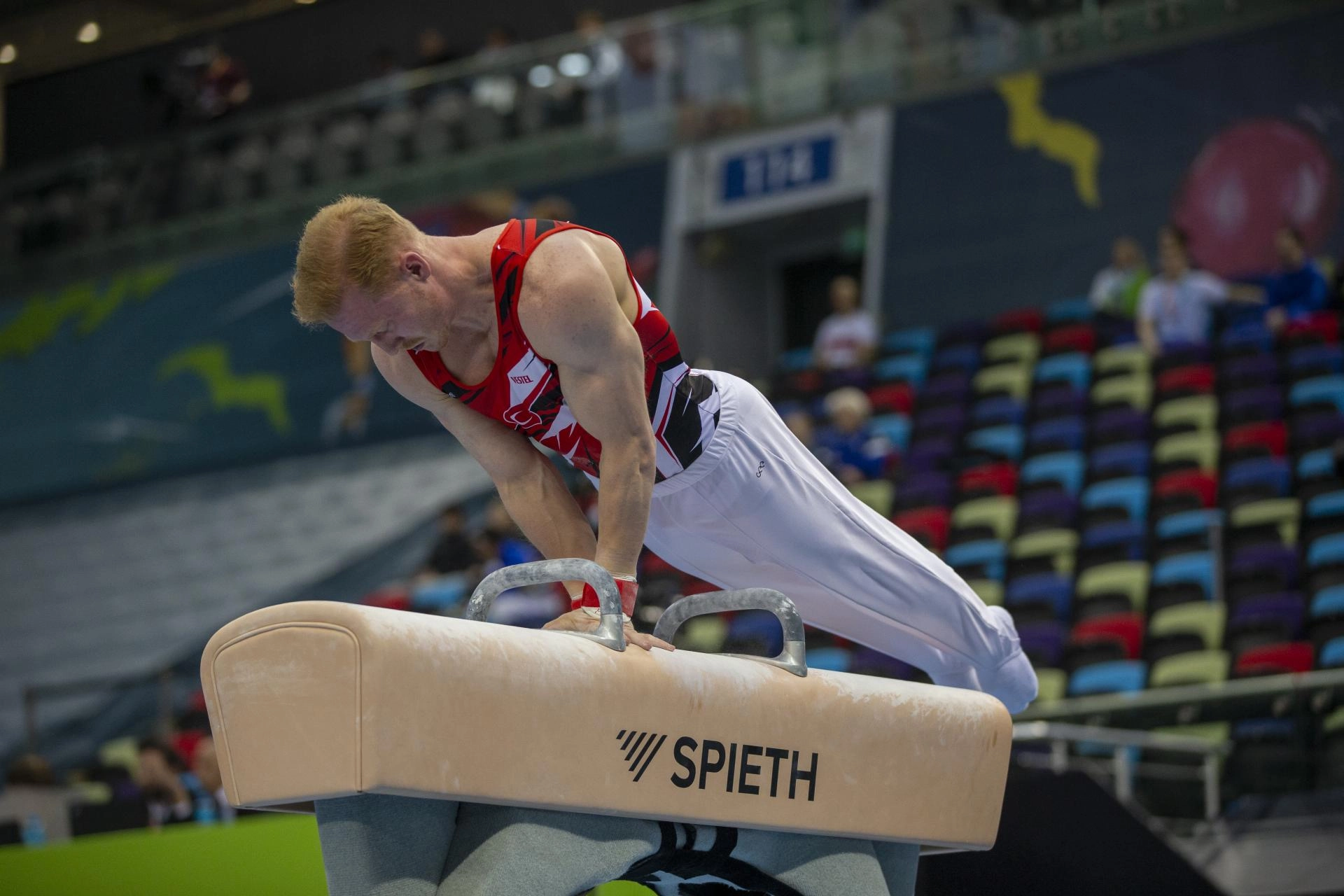 Başkent Bakü'de bulunan Uluslararası Cimnastik Arena'da başlayan yarışmanın ikinci gününde erkeklerde Mehmet Ayberk Koşak kulplu beygir aletinde, Kerem Şener barfiks, Hasan Bulut ise barfiks ve kulplu beygir aletlerinde mücadele etti.