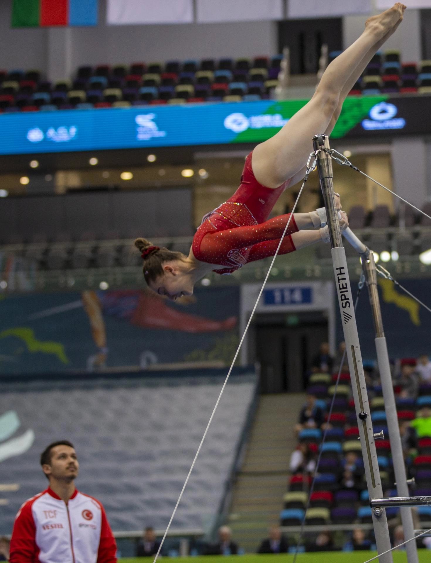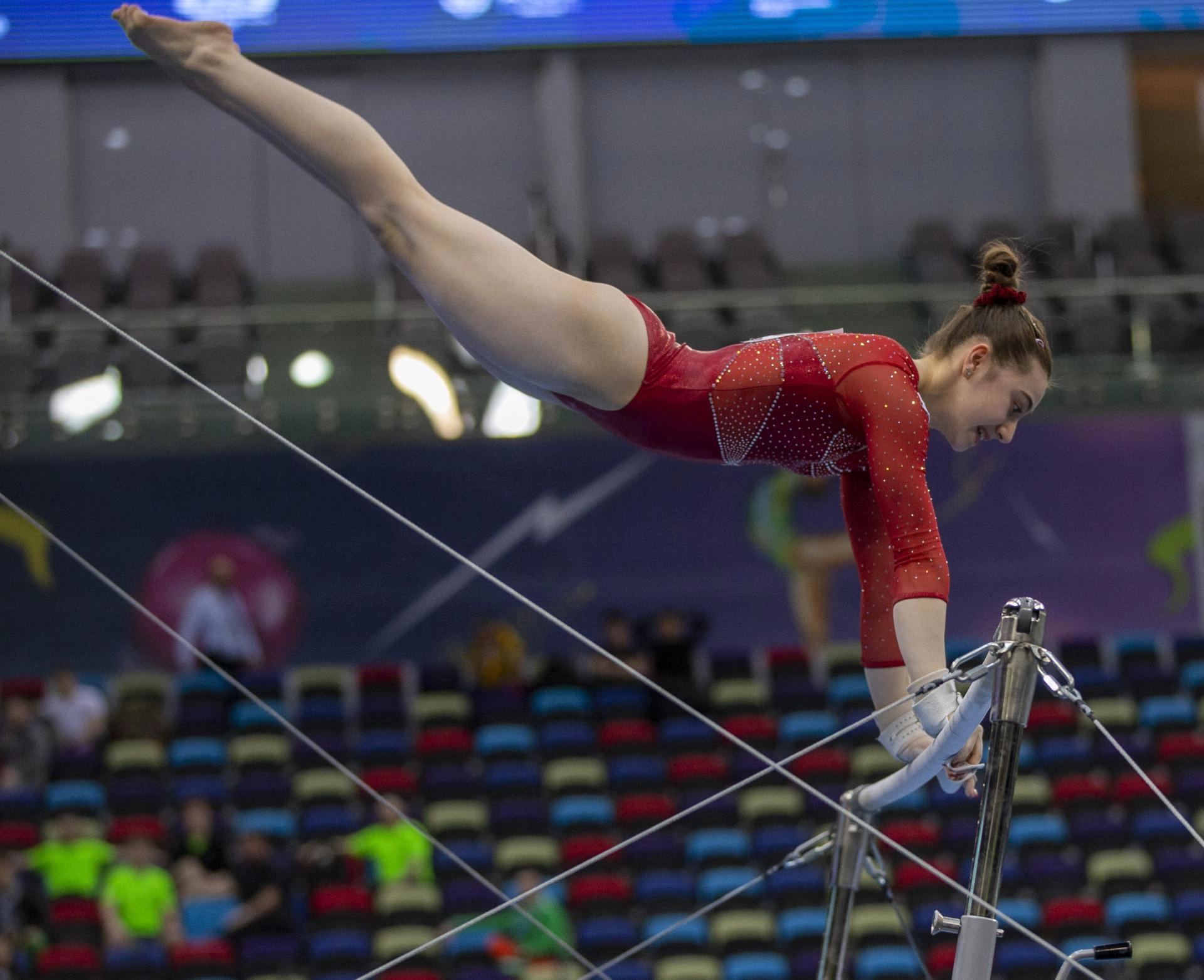 Kadınlarda Bengisu Yıldız da dengesiz barlar ile atlama masasında yarıştı.
