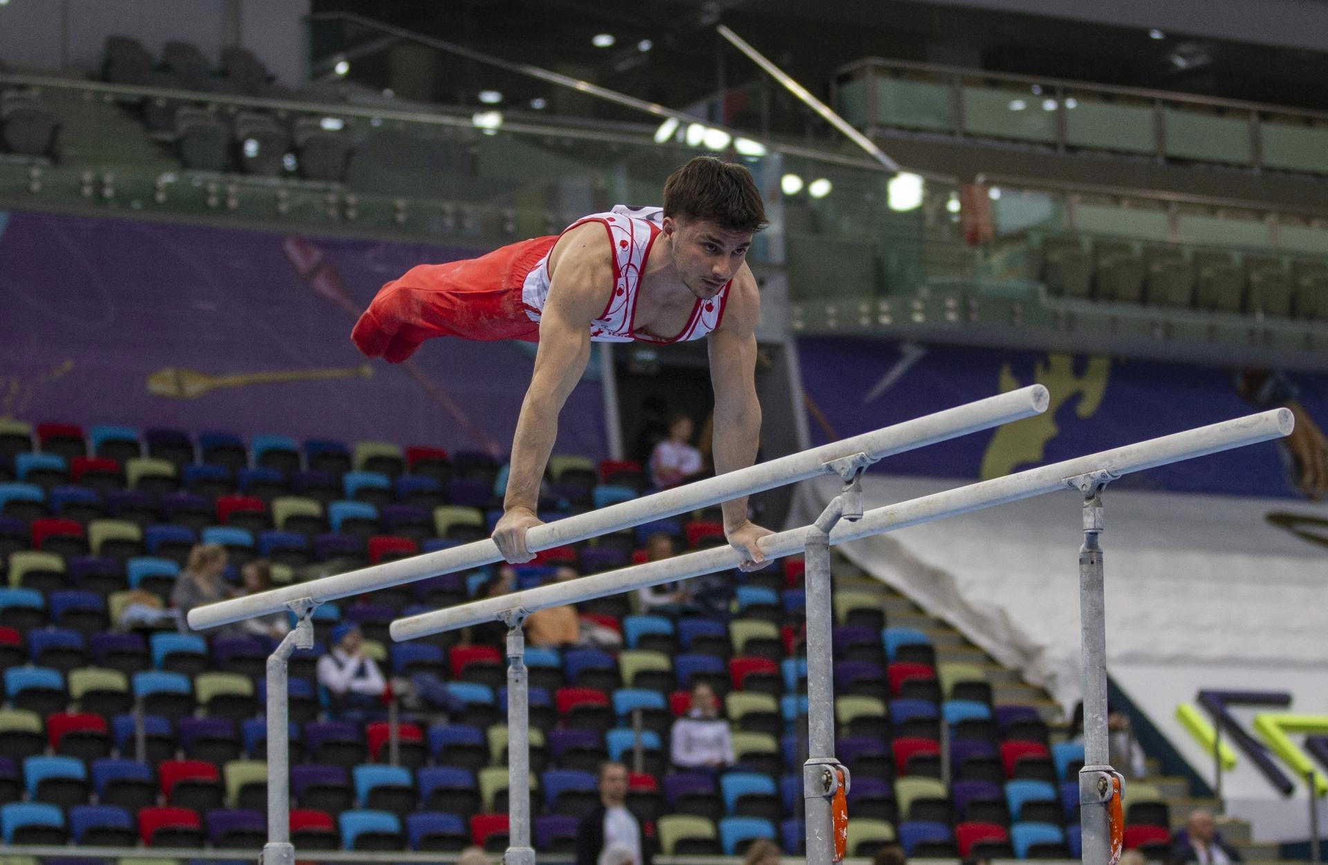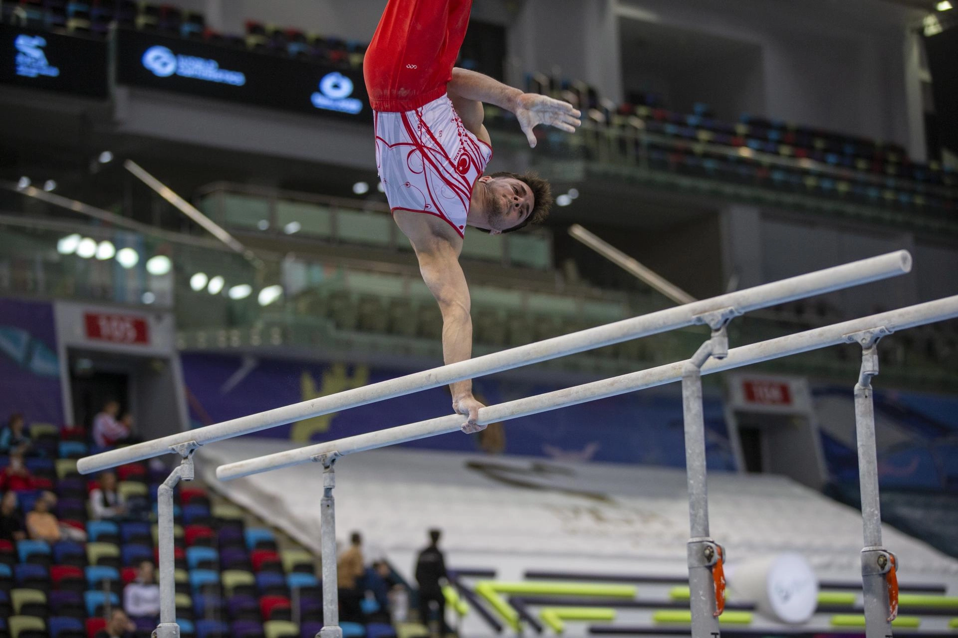 Başkent Bakü'de bulunan Uluslararası Cimnastik Arena'da başlayan yarışmanın ilk gününde erkeklerde Mehmet Ayberk Koşak halka ve yer aletinde, Kerem Şener halka, paralel bar ve yer aletinde, Hasan Bulut ise paralel barda mücadele etti.