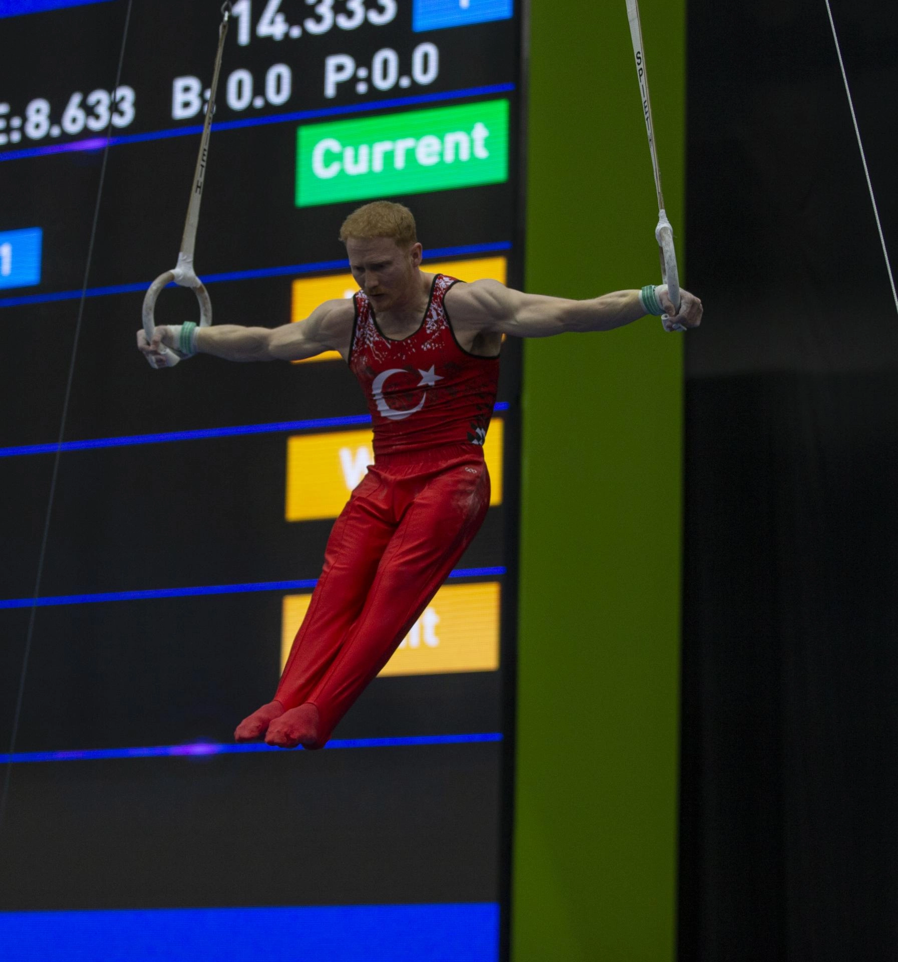 Erkekler halka aletinde 13.500 puanla 8. sırada yer alan Mehmet Ayberk Koşak, finalde mücadele etmeye hak kazandı. Kerem Şener ise 12.866 puanla kendisine 13. sırada yer buldu.