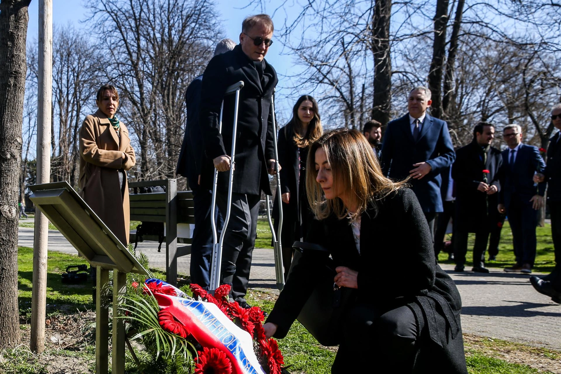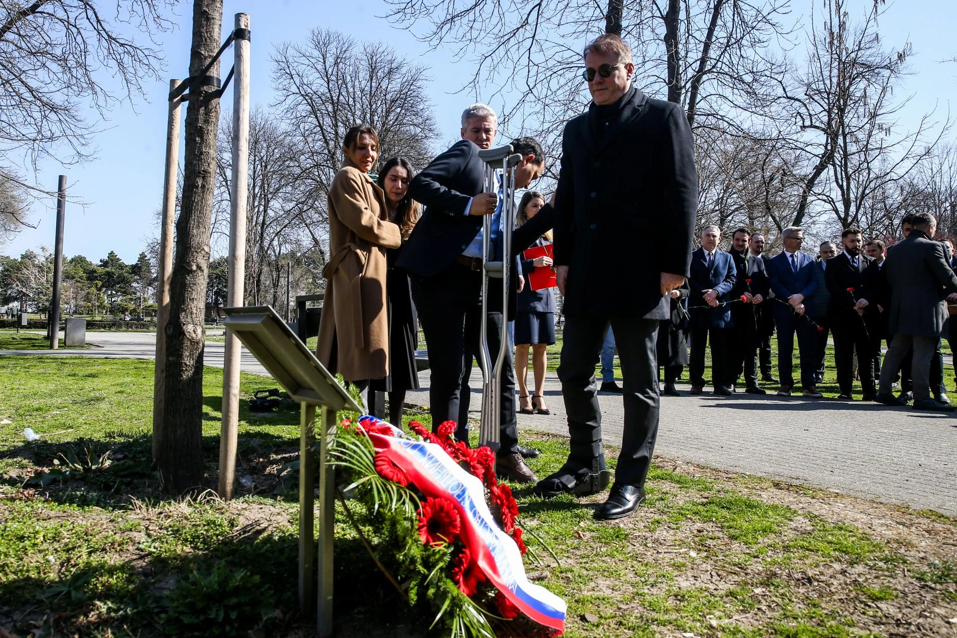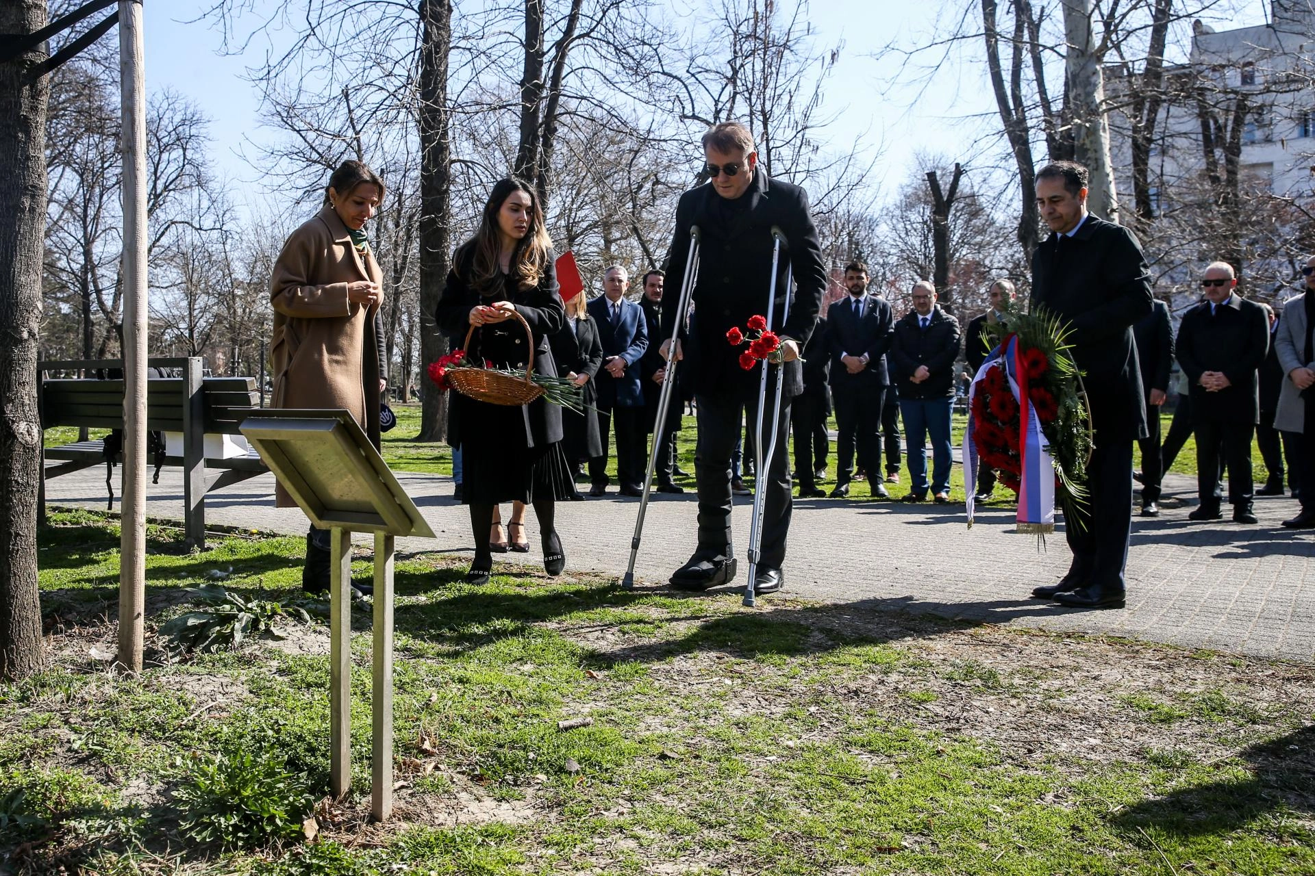 Belgrad'daki Taşmeydan Parkı'nda Balkar anısına dikilen ağaç ve anıtın önünde anma töreni düzenlendi.