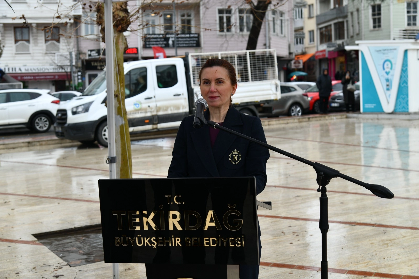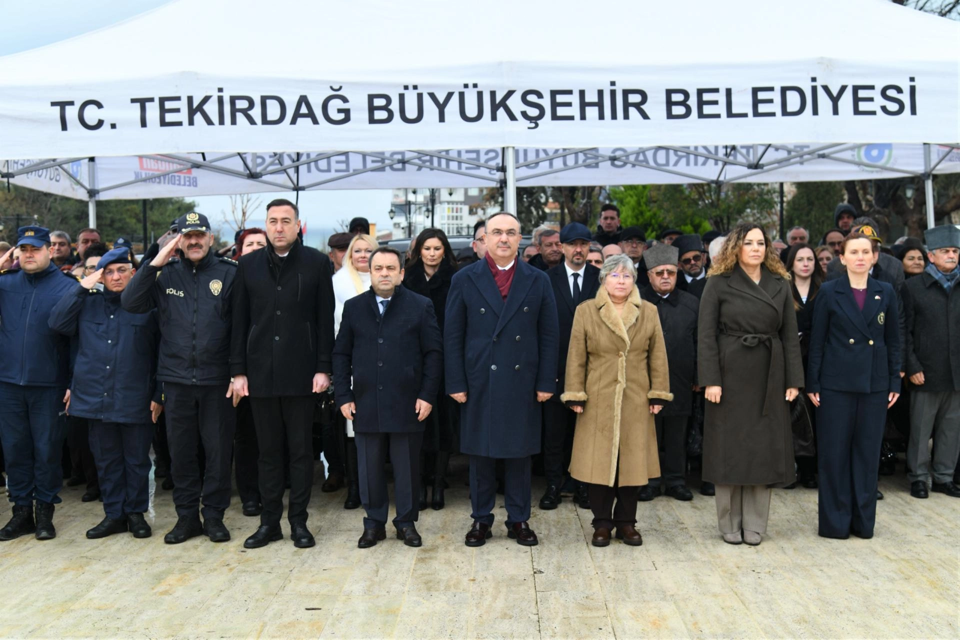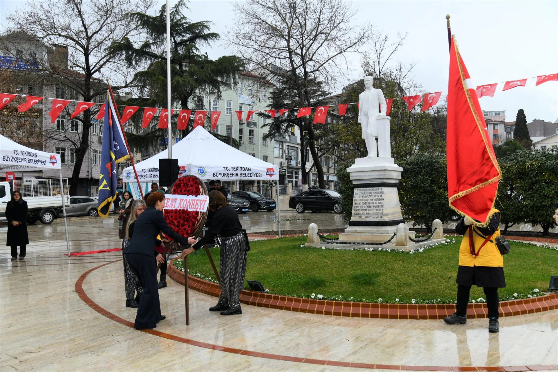 Valilik önünde gerçekleştirilen törende, Tekirdağ Kent Konseyi Başkanı Berrin Başol Menekşe tarafından Atatürk Anıtı'na çelenk sunuldu.