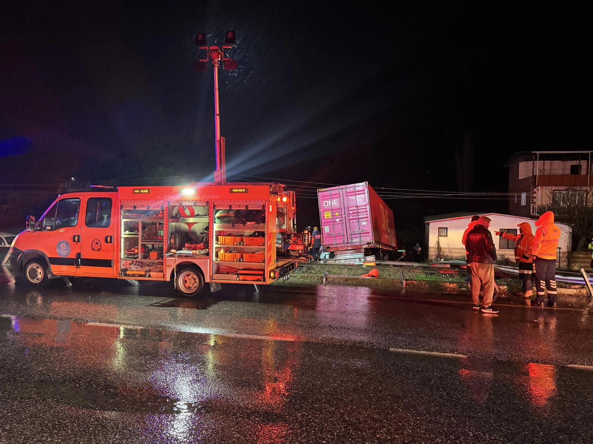 Yunus Uğurlu'nun (28) kullandığı 35 BHM 182 plakalı tır, Aydın-Denizli kara yolu Pınardere Kavşağı'nda sürücüsünün direksiyon hakimiyetini kaybetmesi sonucu demir bariyerleri kırıp tren yoluna girdi.