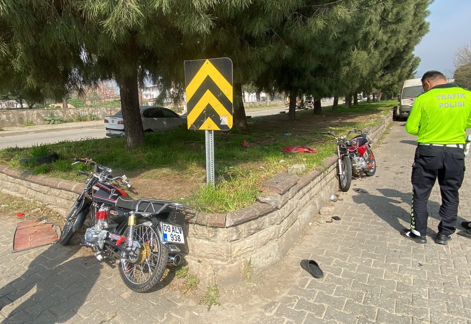 Çarpmanın etkisiyle sürücüler ile 09 ALV 938 motosikletteki O.T. (17) yola savruldu.