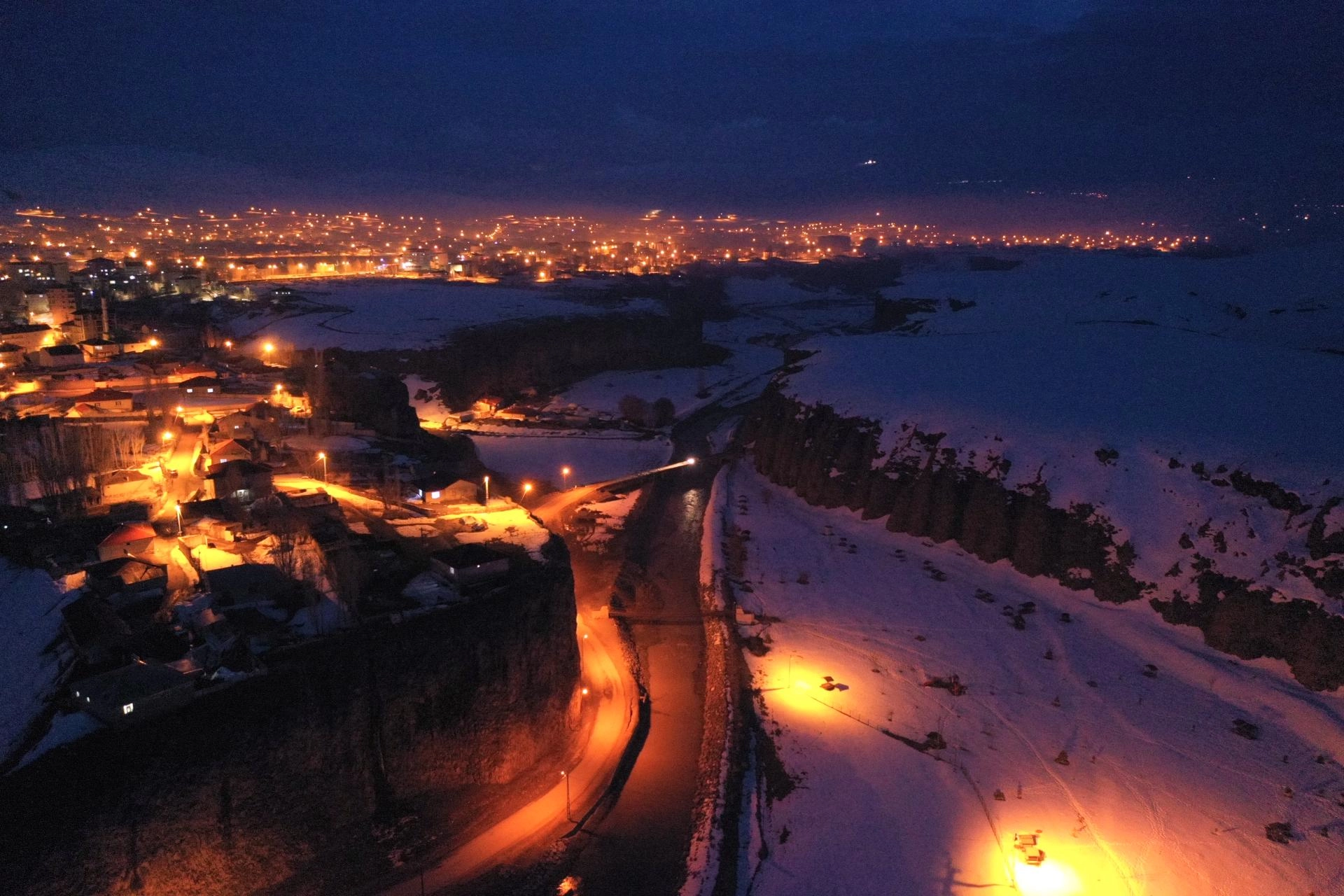 Geceleyin sokak lambaları ve yerleşim yerlerindeki aydınlatmaların ön plana çıktığı kanyonda güzel görüntüler oluştu.