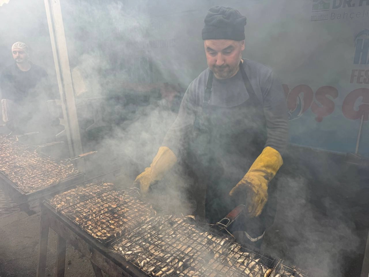 Bahçelievler Belediye Başkanı Hakan Bahadır ile Kaymakam Mehmet Boztepe de katılımcılara hamsi ikram etti.