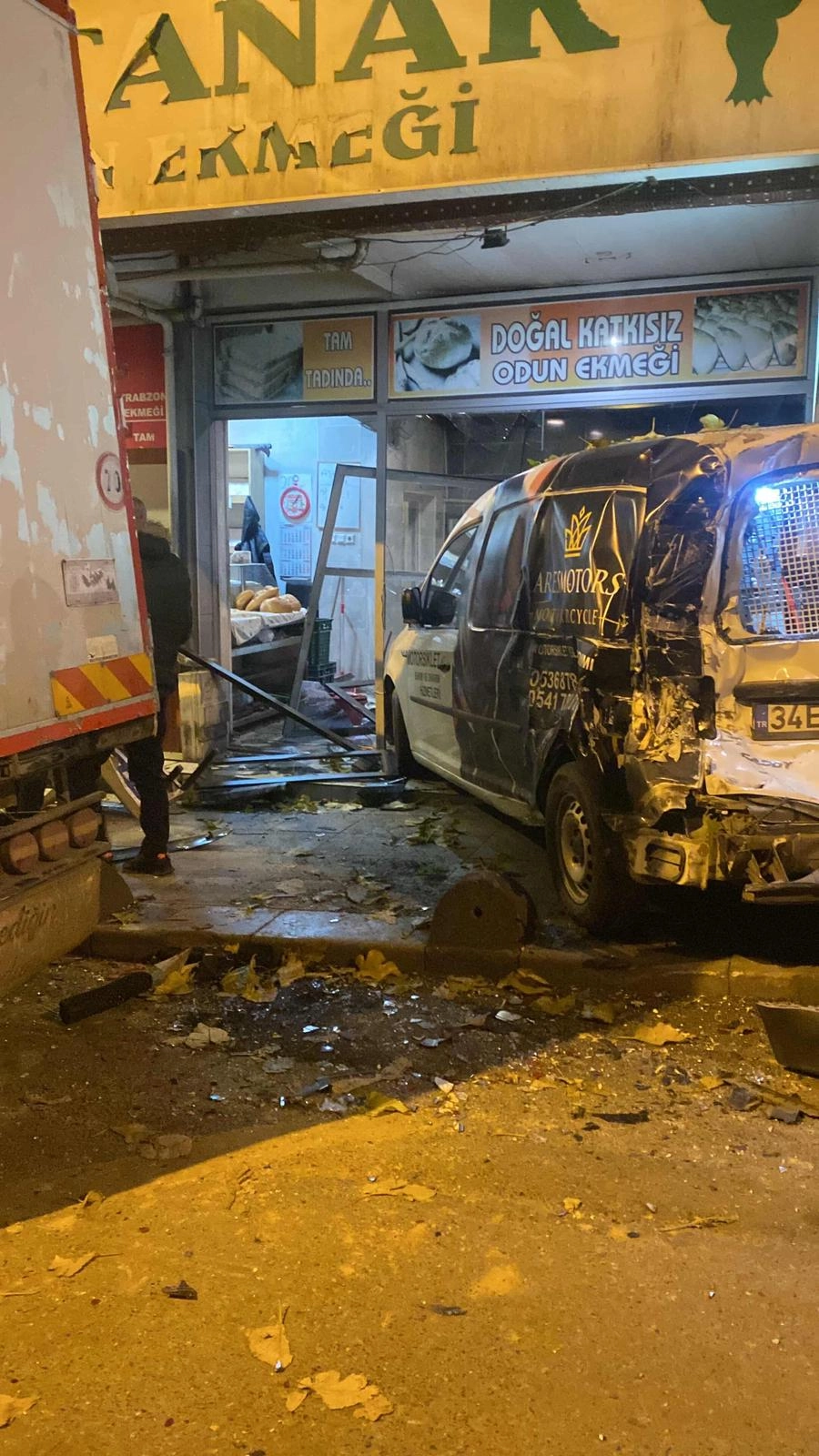 Fırın için iş yerinin önündeki ağacın yanında bulunan odunlardan aldığı sırada kazanın yaşandığını anlatan Ateş, "Bir minibüs sürücüsü 'Bana 4 ekmek verir misin?' dedi. Ben oradan buraya girene kadar arkamda kıyamet koptu. Arabanın önünden kaçtım, yoksa bana çarpacaktı, 5-10 saniye. Direkt arka tarafa kaçtım." diye konuştu.