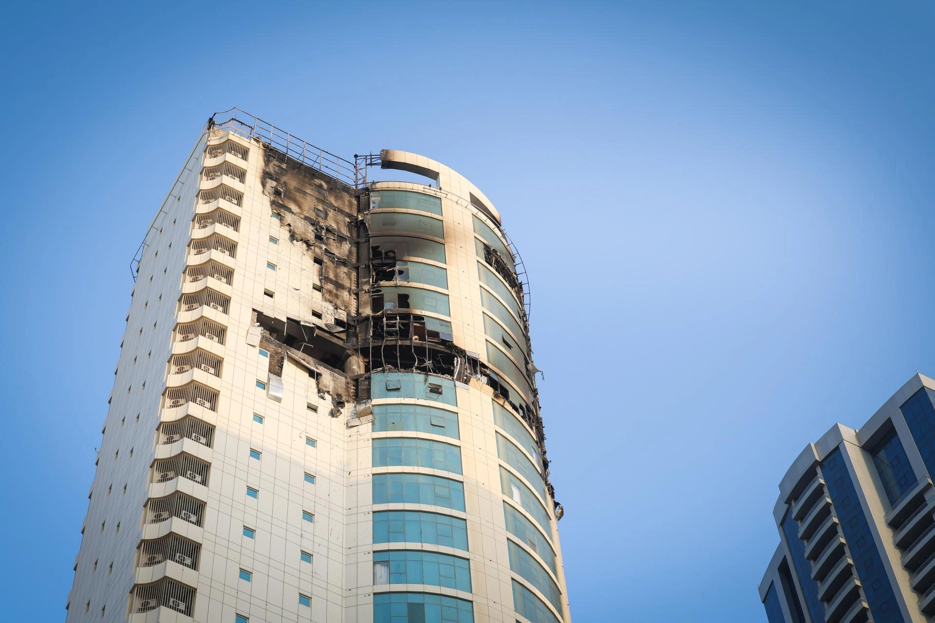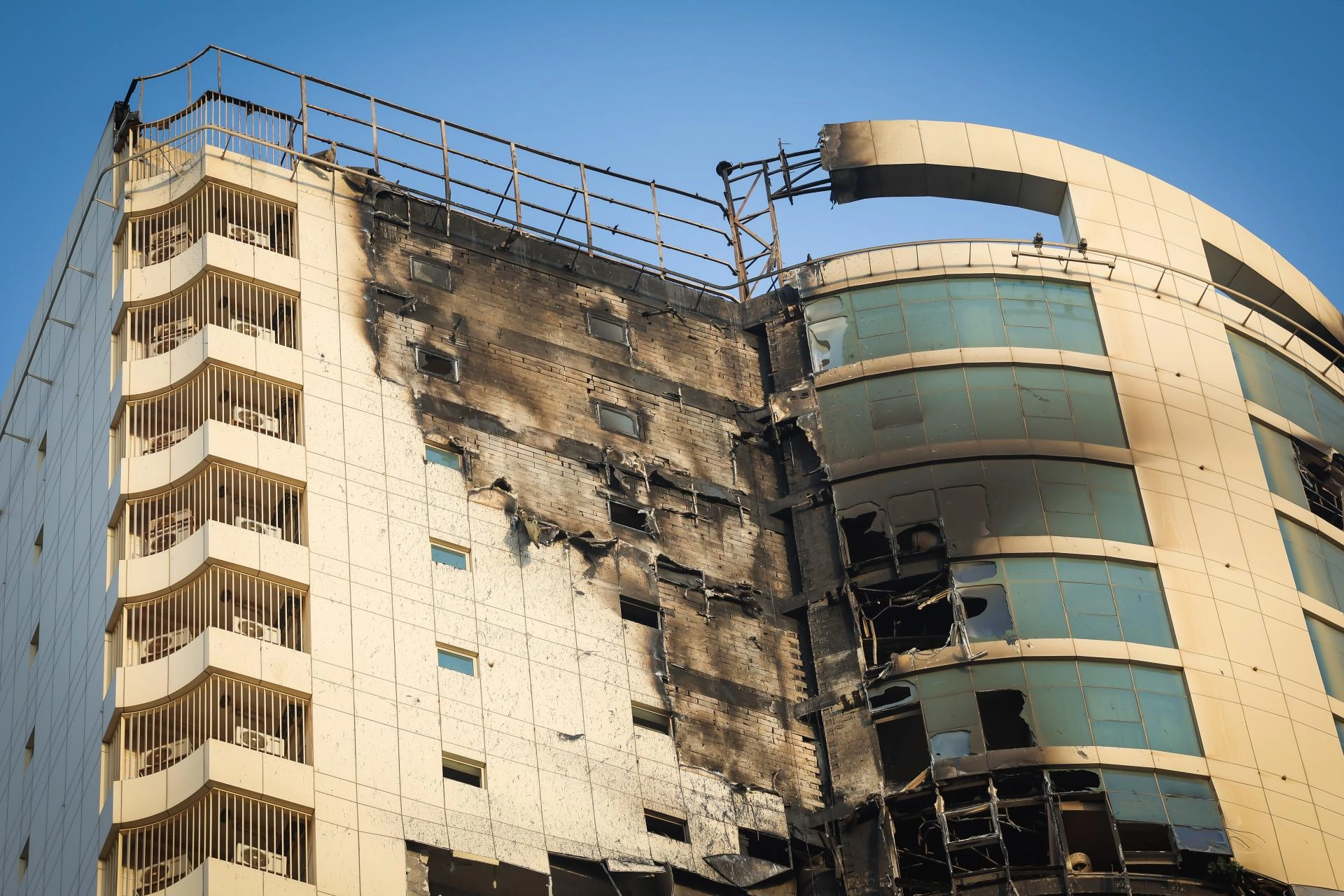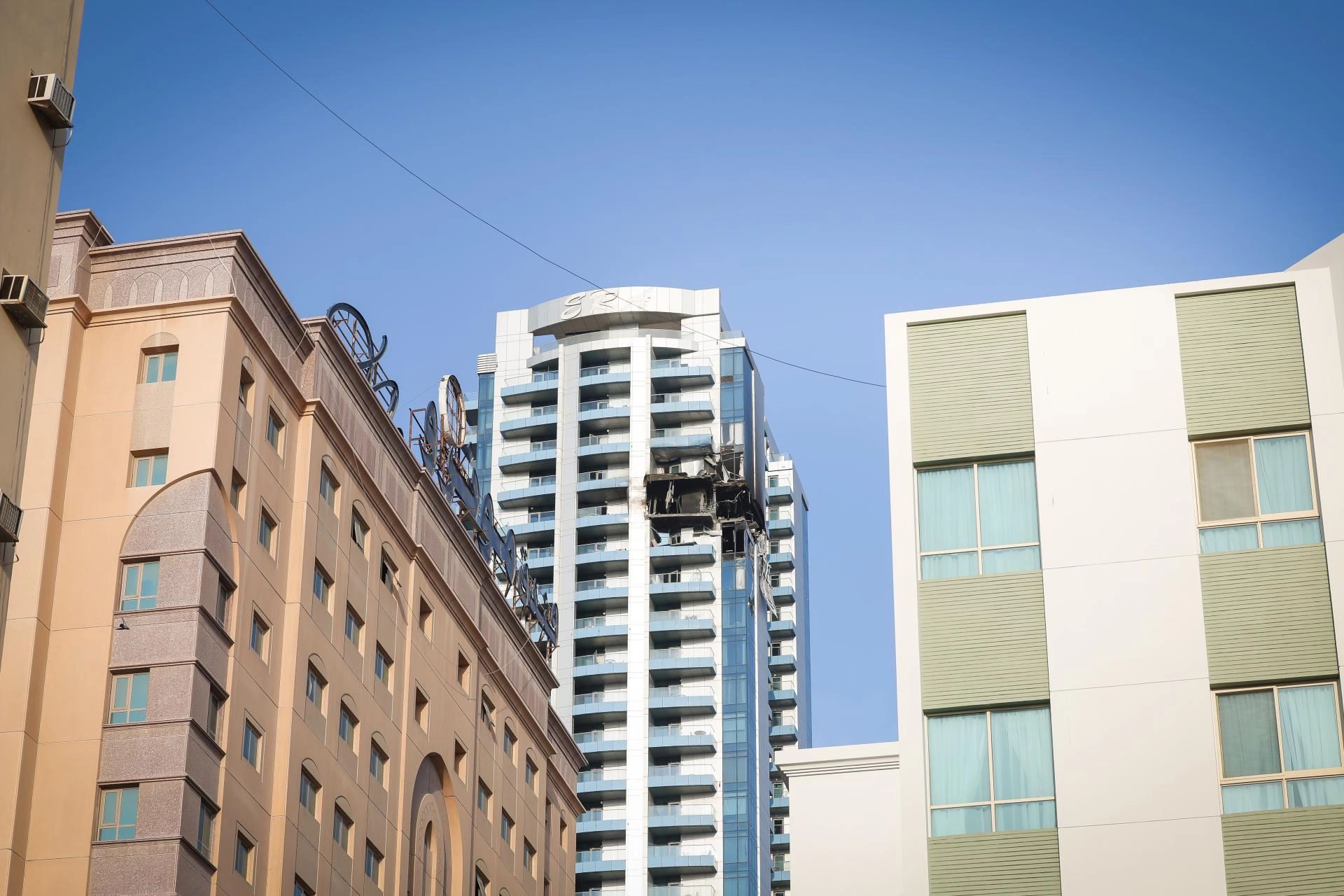 Sosyal medyada paylaşılan videoda isabet alan binadan yoğun duman çıktığı görüldü ve çevredeki siren sesleri duyuldu.