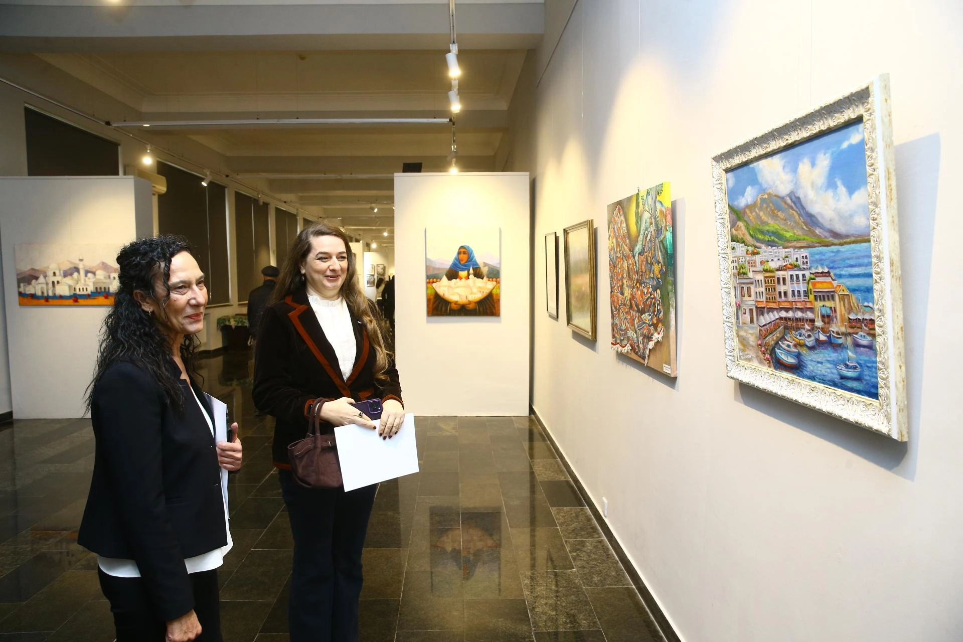 Programın sonunda davetliler sergiyi gezerek eserler hakkında bilgi aldı.