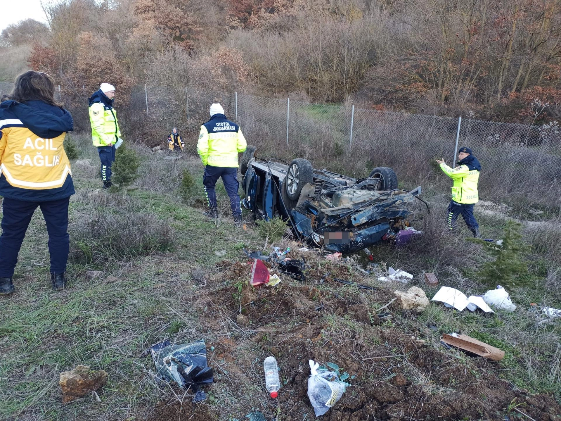 BALIKESİR (AA) - İstanbul-İzmir Otoyolu'nun Balıkesir kesiminde şarampole devrilen otomobildeki 1 kişi öldü, 2 kişi yaralandı.