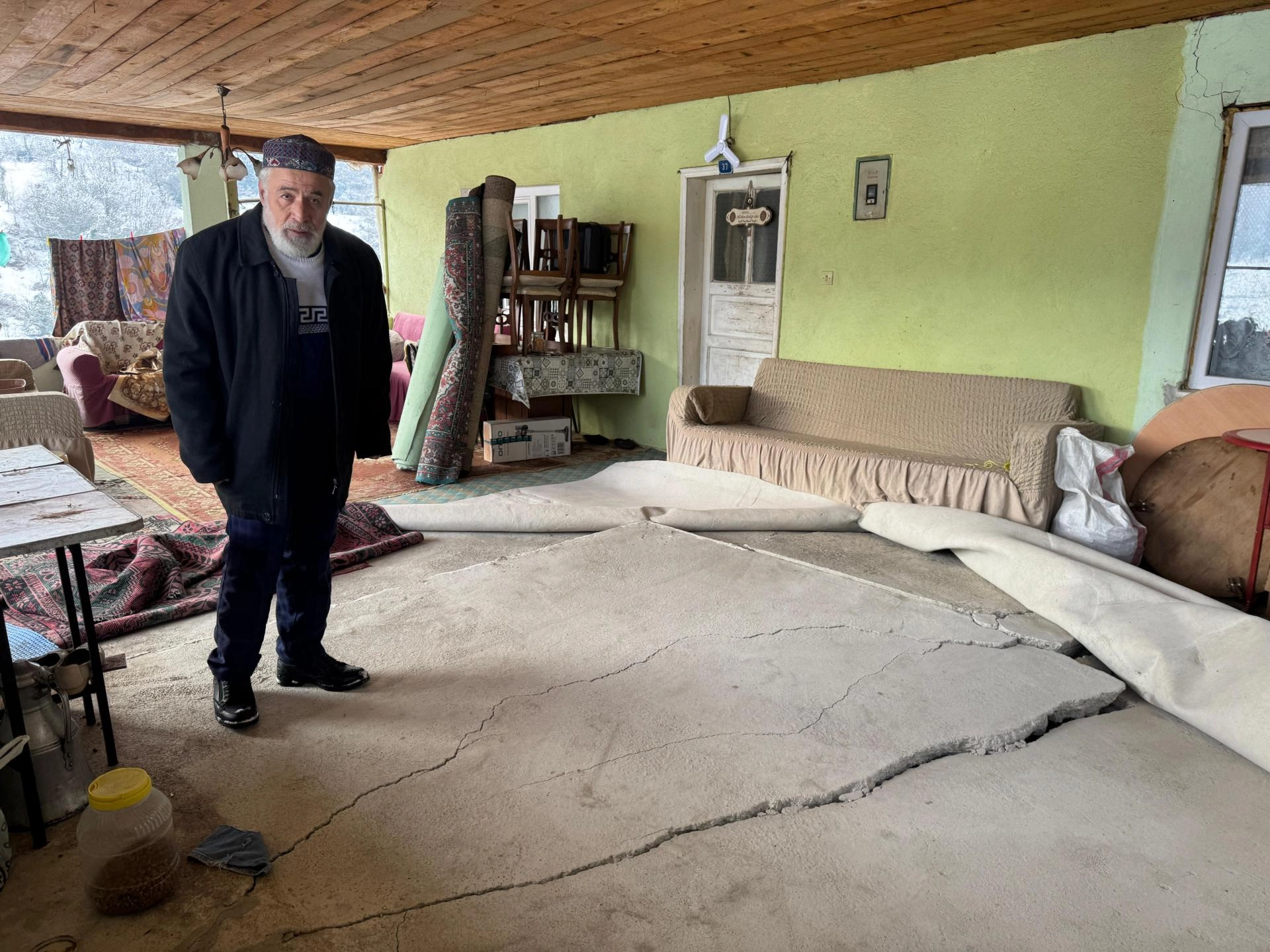 Köy sakini 62 yaşındaki Talat Göktepe de heyelanlar nedeniyle evinde çatlaklar oluştuğunu aktararak, "Kokuyoruz, gece uyku yok. Gece yatmaya evleri sağlam olan komşulara gidiyoruz, evde olduğumuz zaman da sabaha kadar uyumuyoruz. Sürekli gürül gürül sesler geliyor." diye konuştu.