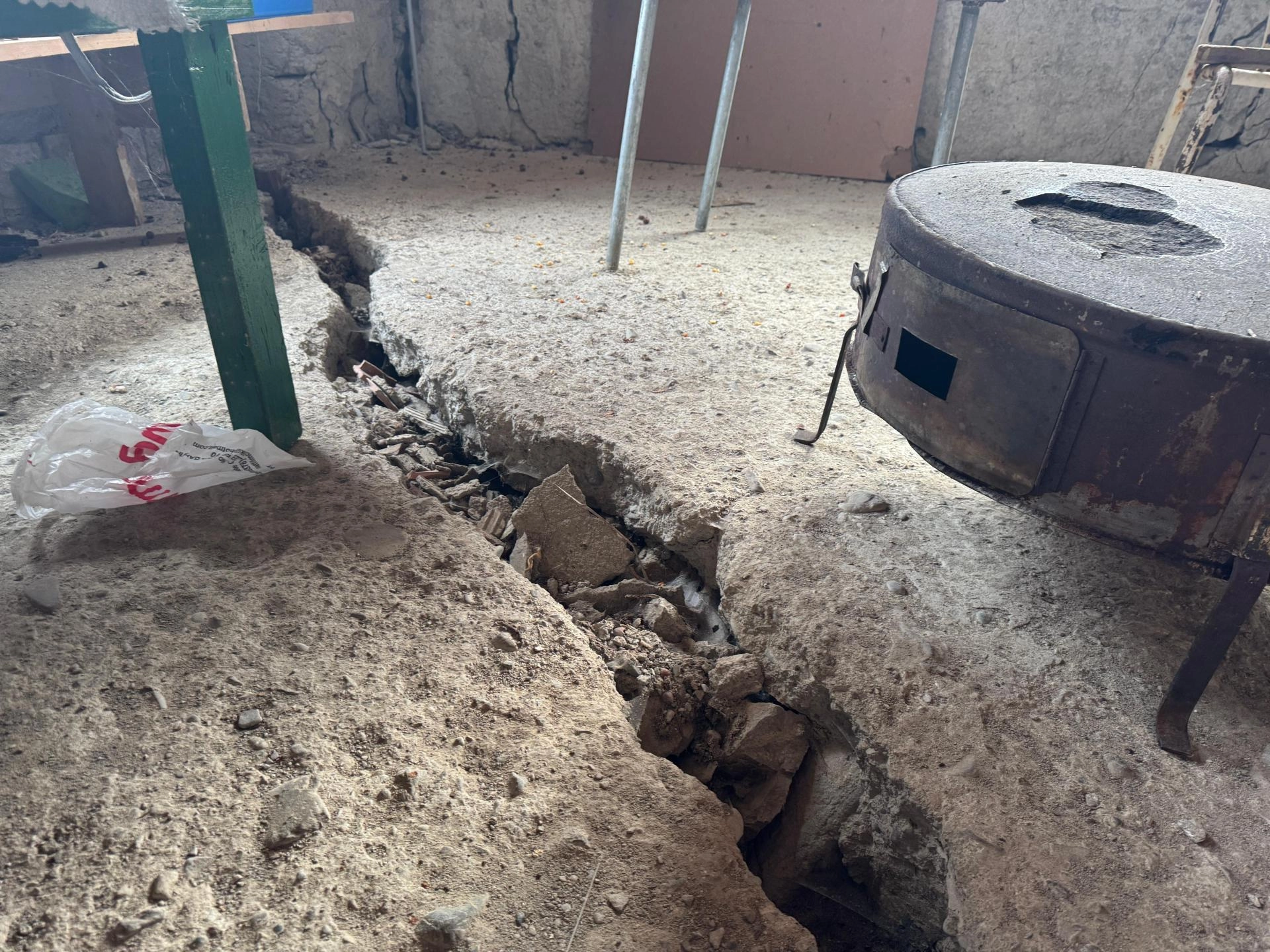Beton yolda oluşan çatlakların yanı sıra yol kenarındaki 15 evin zemin, tavan ve duvarlarında da çatlaklar meydana geldi.