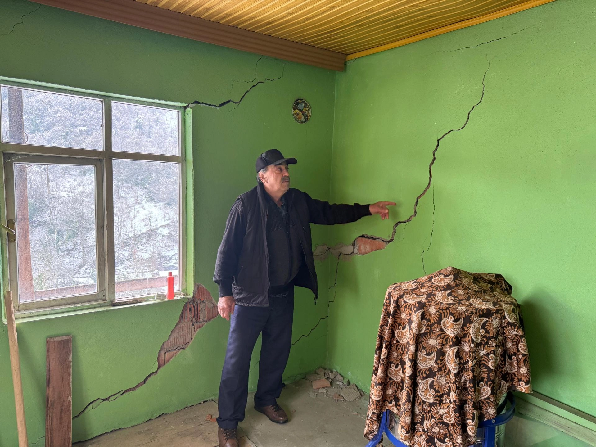 Evinde çatlaklar oluşan köylülerden 41 yaşındaki Yusuf Göktepe, 2004'te yaşadıkları heyelanın ardından yolda kaymalar meydana geldiğini anlattı.