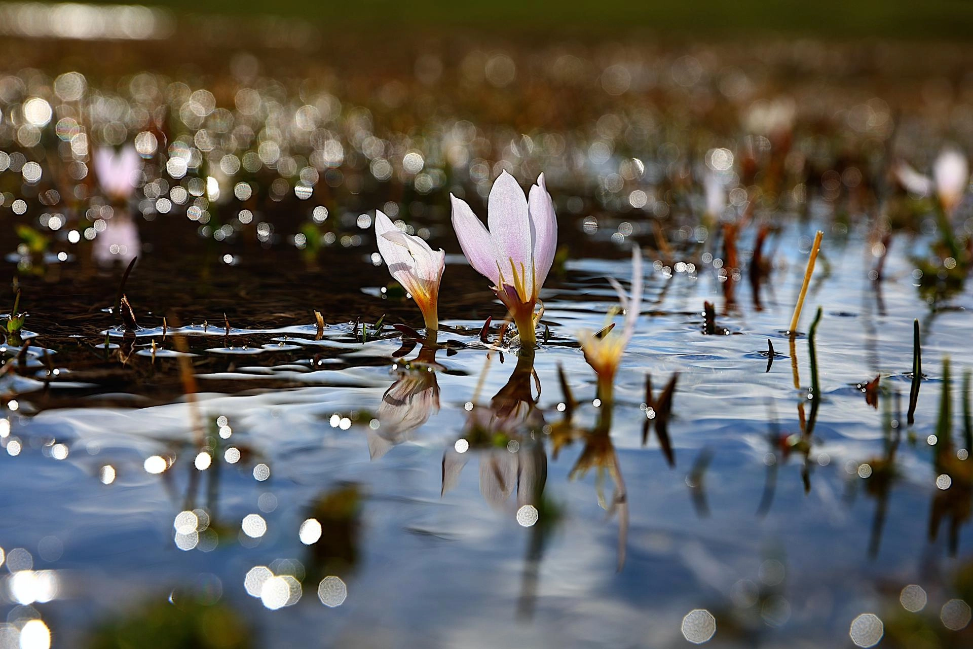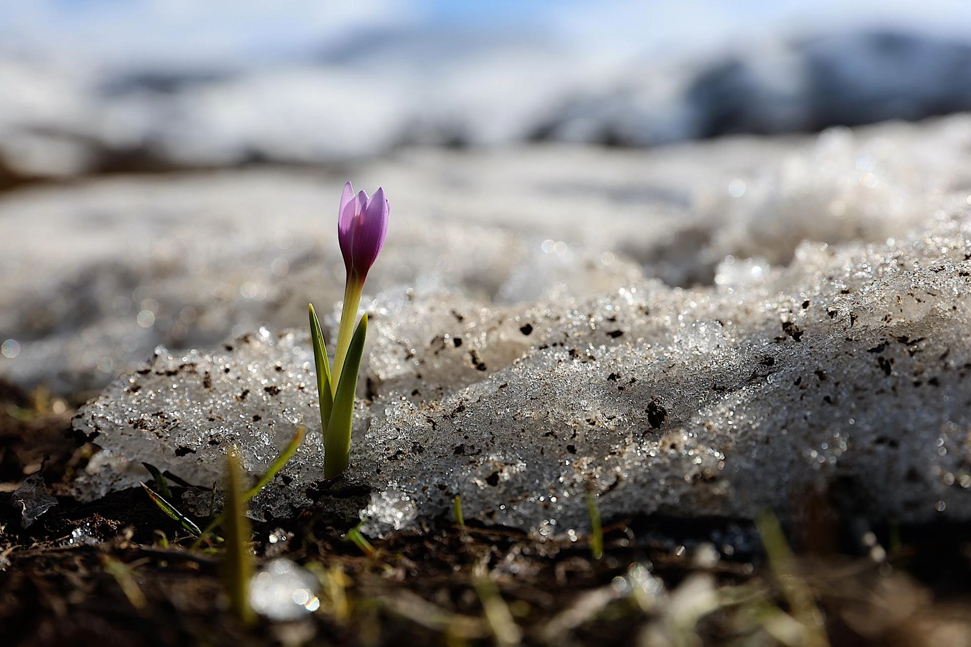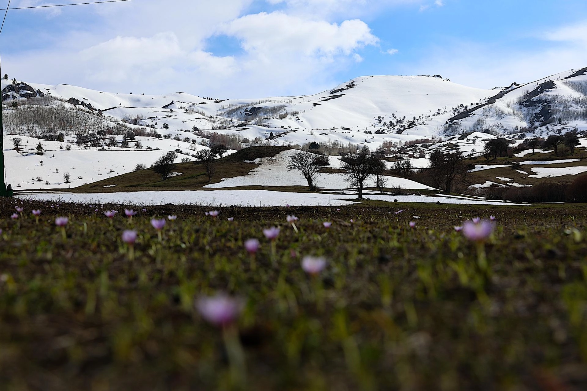 Çetin geçen kışın ardından havanın ısınmaya başlamasıyla yüksek kesimlerde beyaz, pembe ve mor çiğdemler açtı.