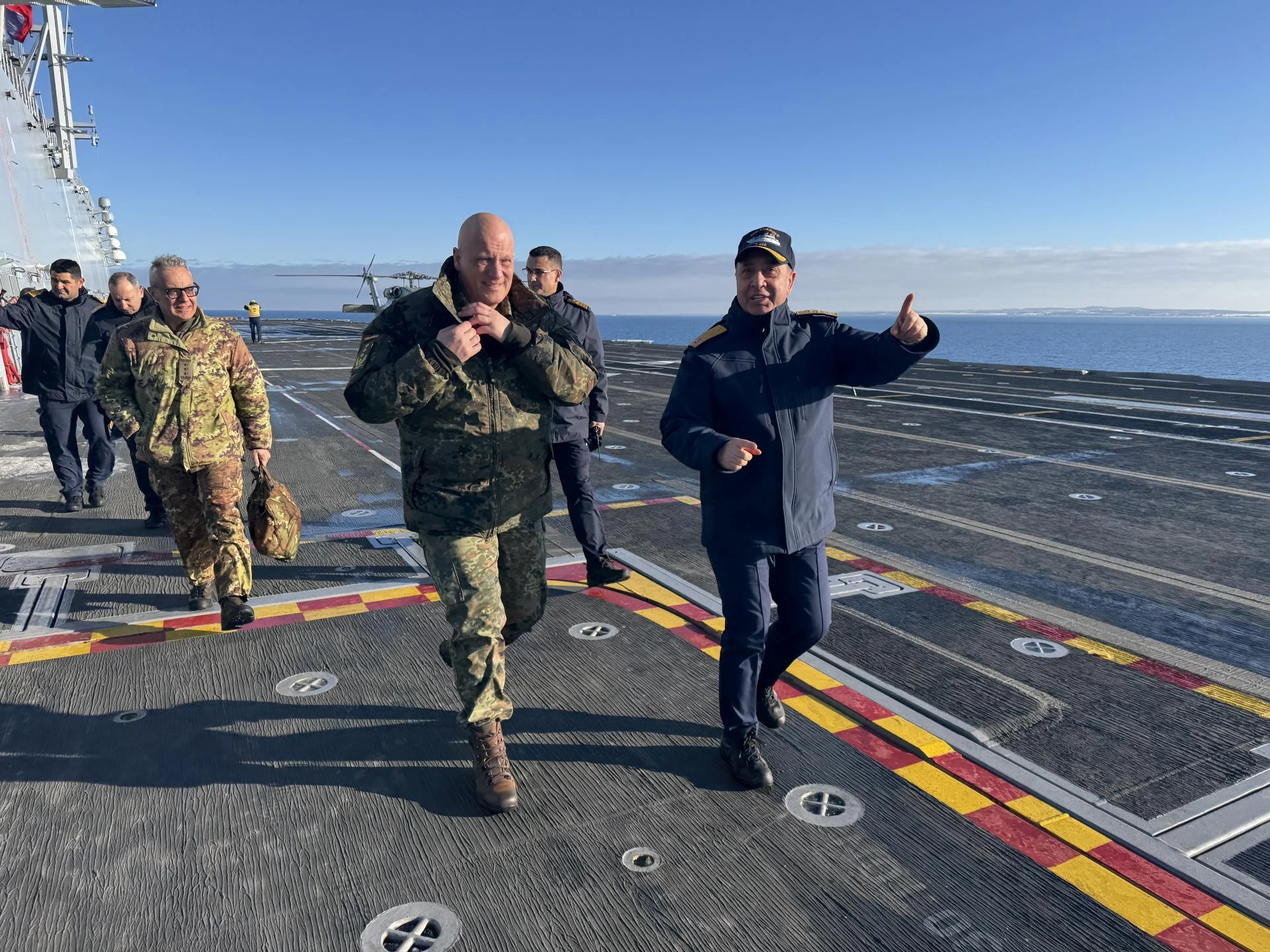 Tatbikat kapsamında TCG Anadolu gemisini ziyaret eden Gerhartz, burada yetkililerden faaliyetler hakkında bilgi aldı.