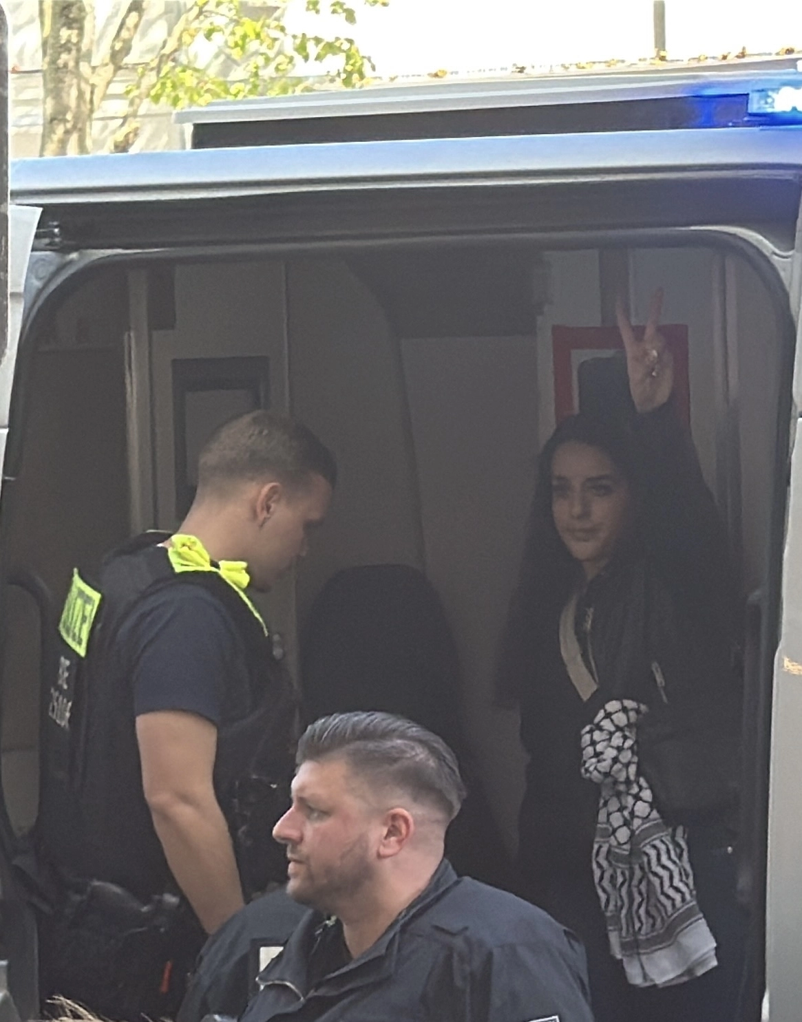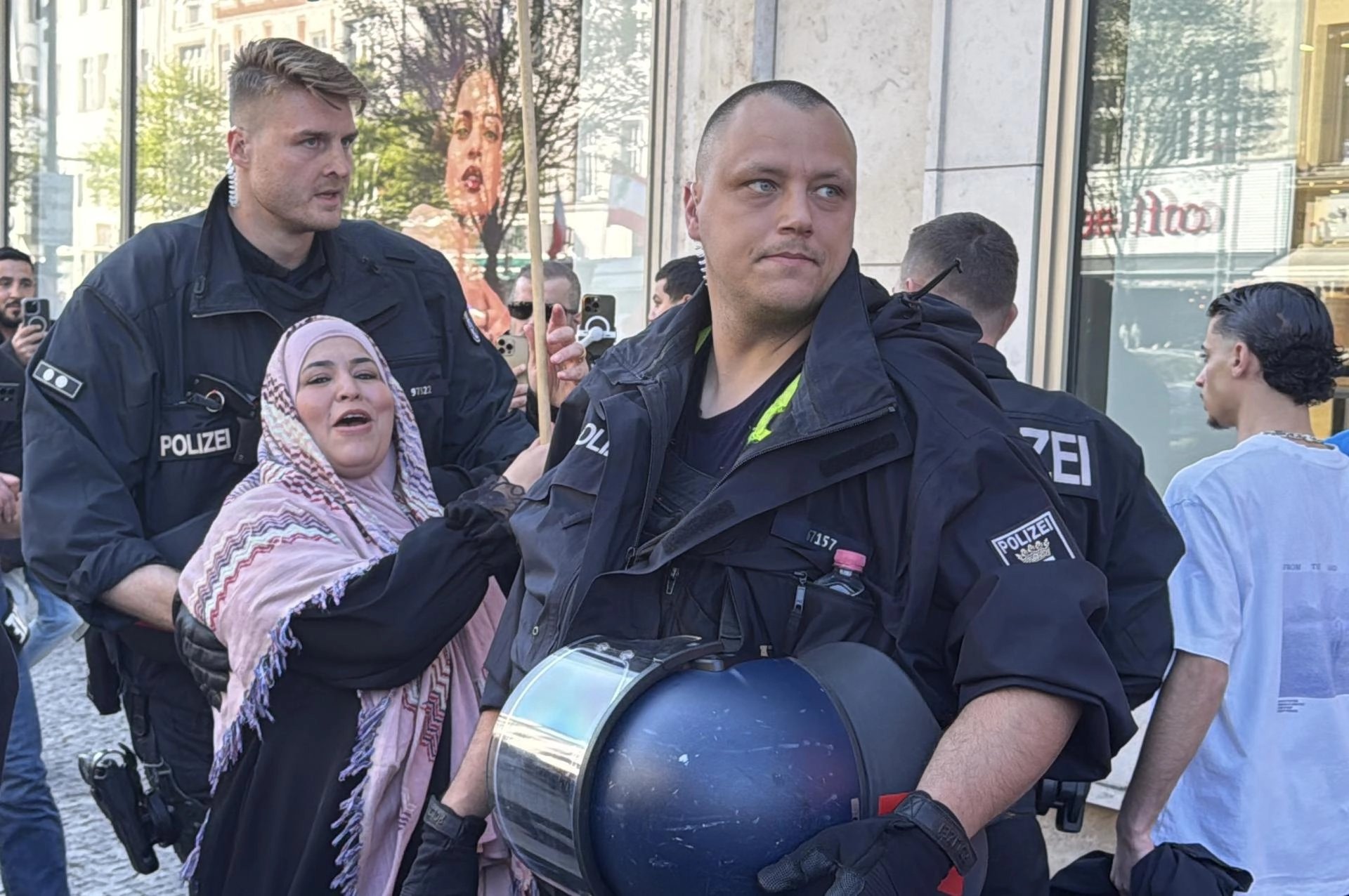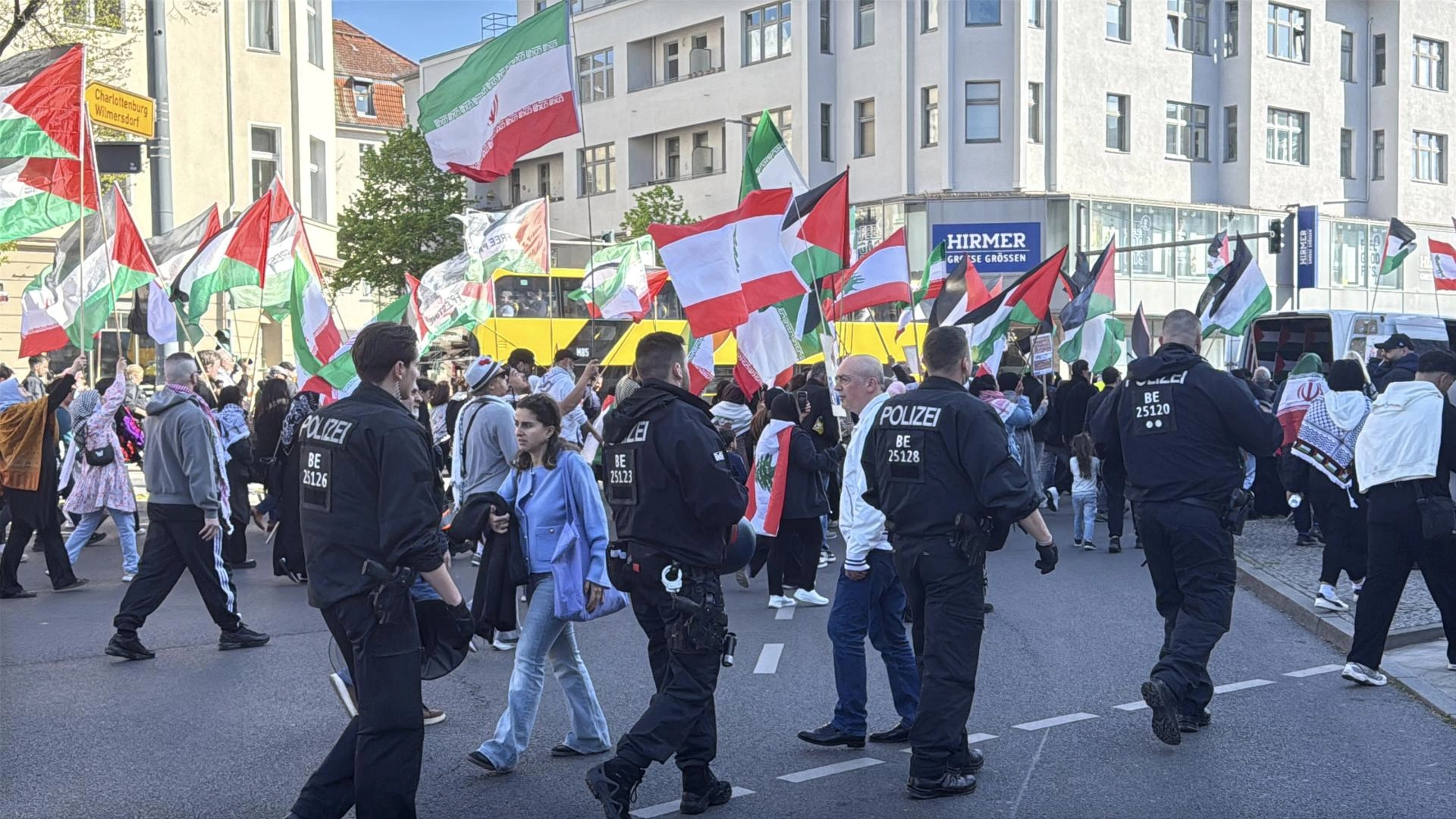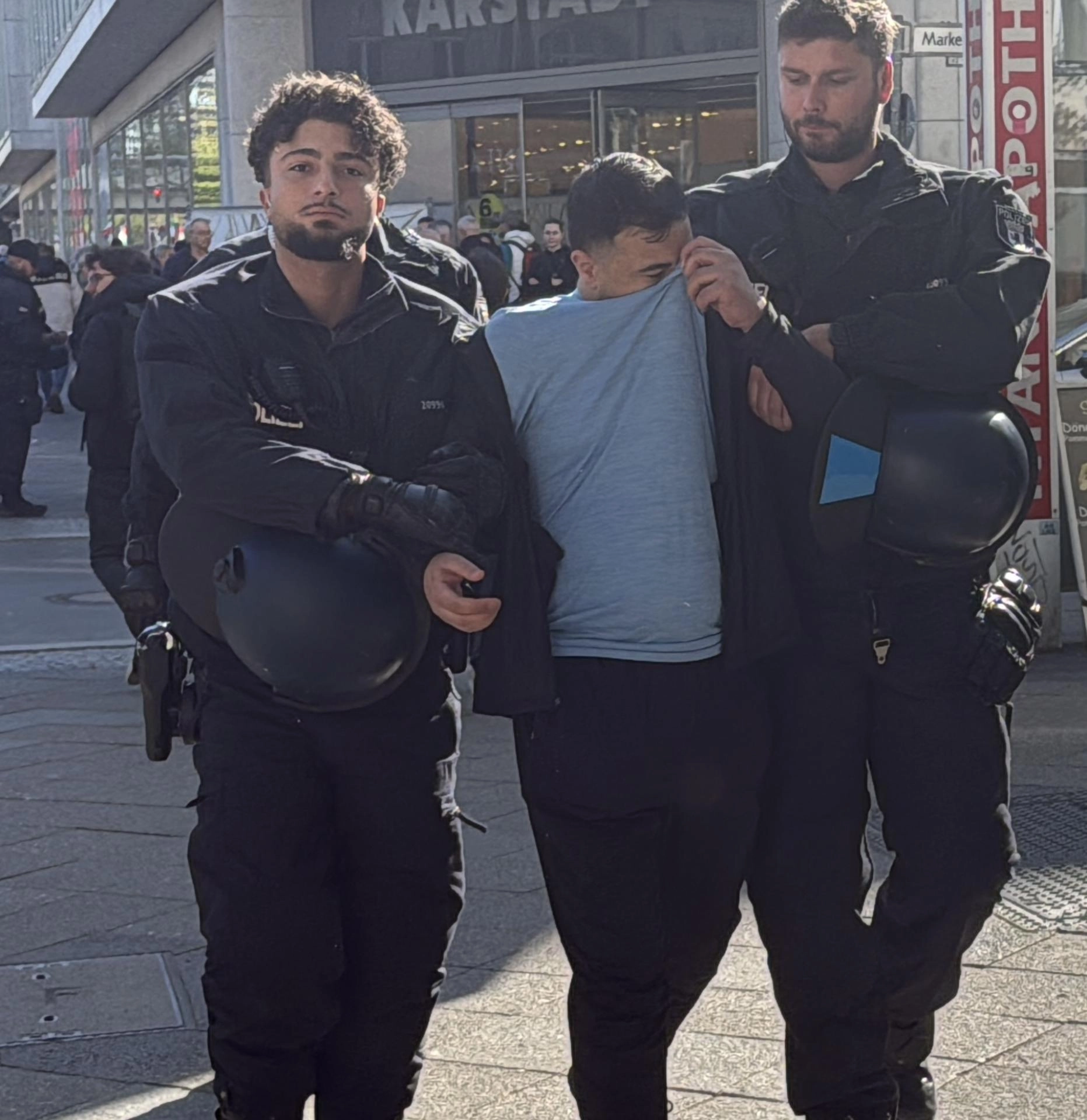 Göstericiler Filistin bayrakları ile üzerinde "(Almanya Başbakanı Friedrich) Merz, torunlarına acıyorum, senin mirasın yüzünden utanç duyuyorlar", "Soykırımı durdurun", "Hey siyonistler, Almanya sizi seviyor. Gelin ve buraya yerleşin", Filistin’i kurtarın, insanlığı koruyun" ve "9 bin 600 Filistinli esir hepsi serbest bırakılsın" yazan dövizler taşındı.