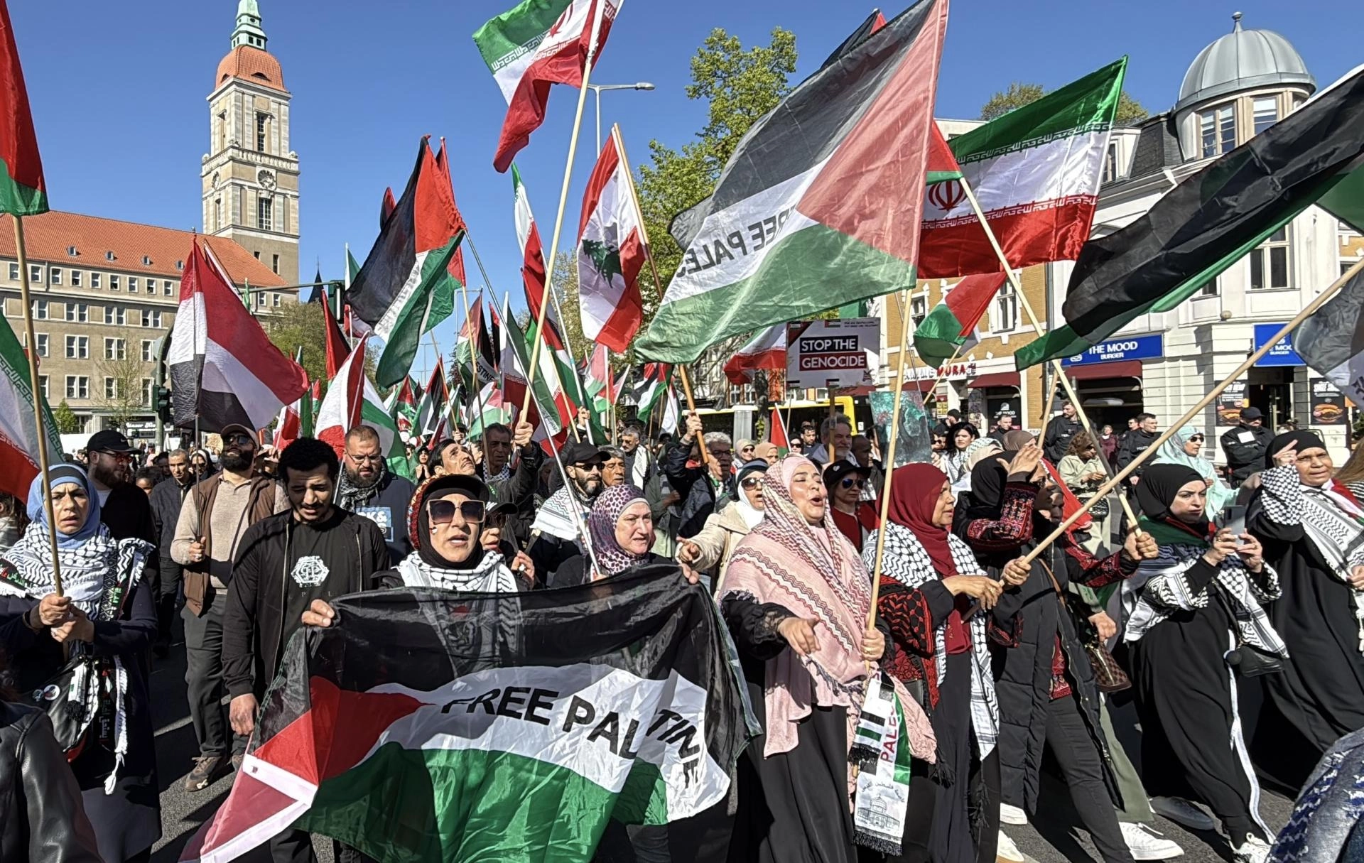 Berlin’in Schöneberg semtindeki Innsbrucker Meydanı’nda toplanan yüzlerce kişi, Filistin’e destek vermek, İsrail’e silah sağlanmasını protesto etmek ve savaş suçu işleyenlerin yargılanması talebiyle Steglitz semtindeki Herrmann-Ehlers-Platz’a kadar yürüdü.