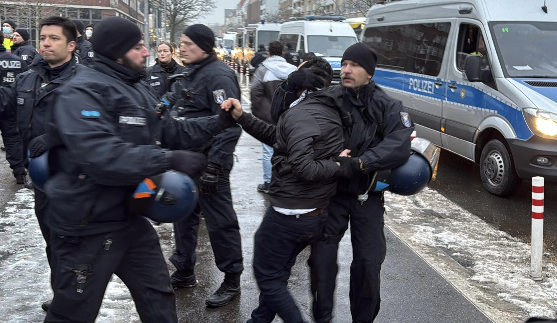 Berlin'deki Wedding semtinde toplanan yüzlerce kişi, Leopold Meydanı’na yürüdü.