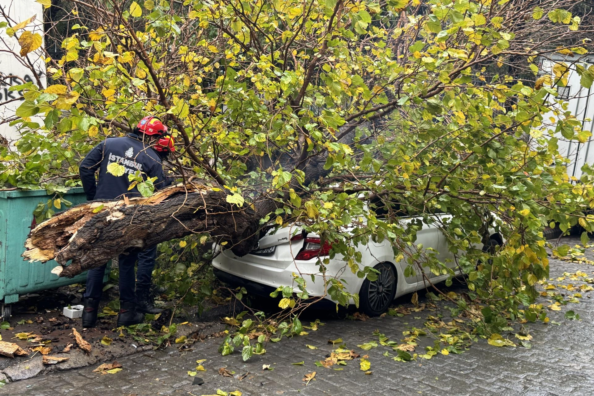İSTANBUL (AA) - Beyoğlu'nda park halindeki otomobilin üzerine devrilen ağaç, itfaiye ekiplerince kaldırıldı.