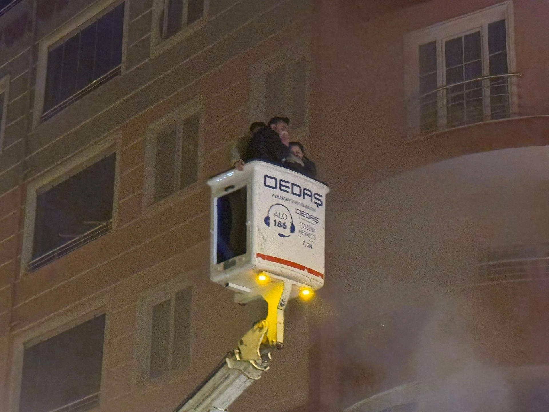 Duman dolan binada mahsur kalanlar merdivenli araçlarla balkonlardan tahliye edildi.