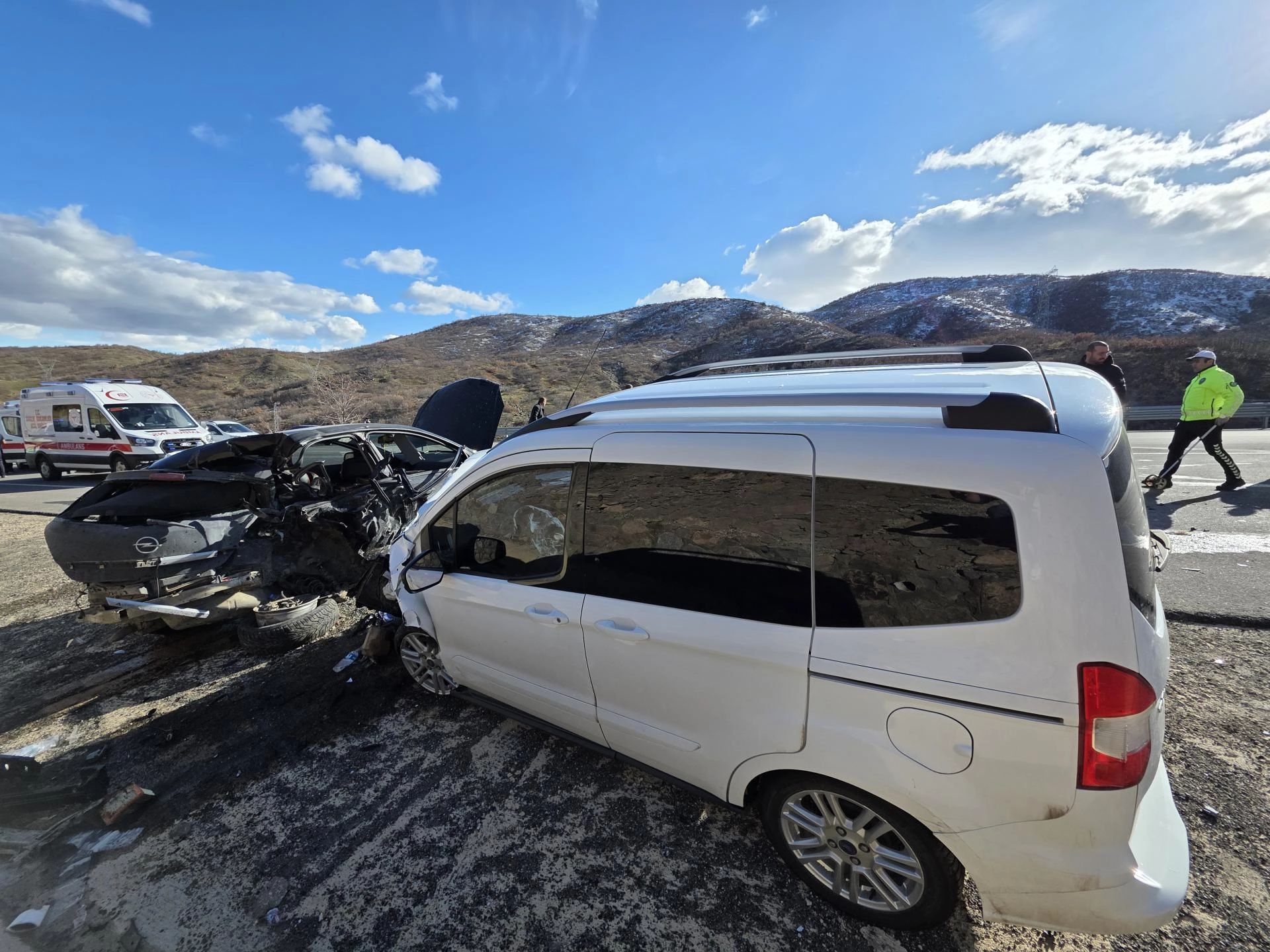 Sürücülerinin kimliği henüz belirlenemeyen 44 DR 238 plakalı otomobil ile 23 ADG 786 plakalı hafif ticari araç, Bingöl-Elazığ kara yolu Kurudere köyü mevkisinde çarpıştı.