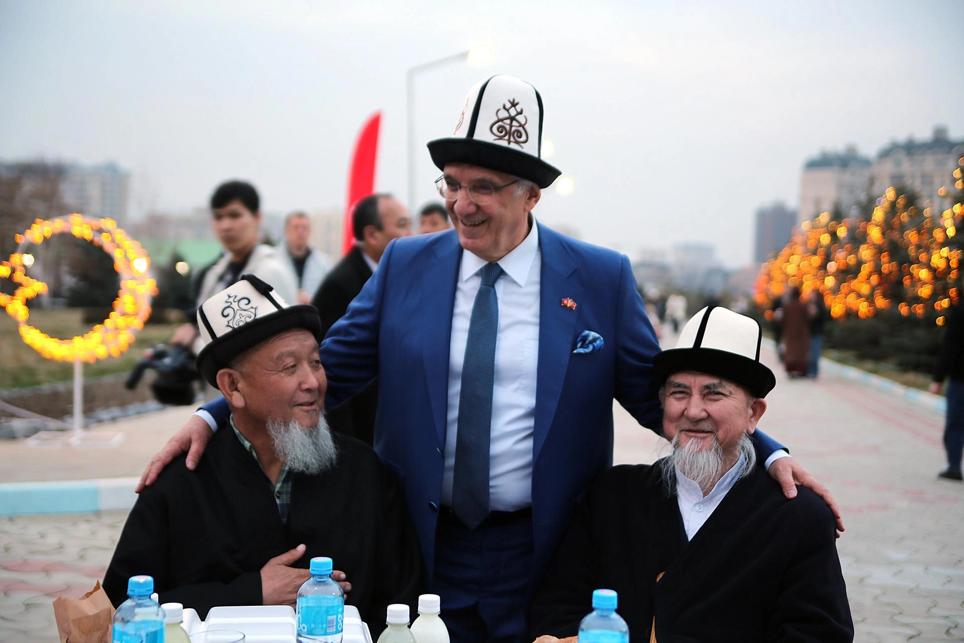 Kırgız ve Türk bayrakları altında düzenlenen iftara, Kırgızistan Sağlık Bakanı Damirbek Osmonov, Kırgızistan Bilim, Yüksek Öğretim ve İnovasyon Bakanı Gülzat İsamatova, büyükelçiler, bürokratlar, dernek yetkilileri katıldı.